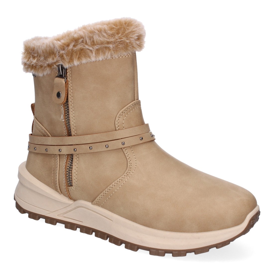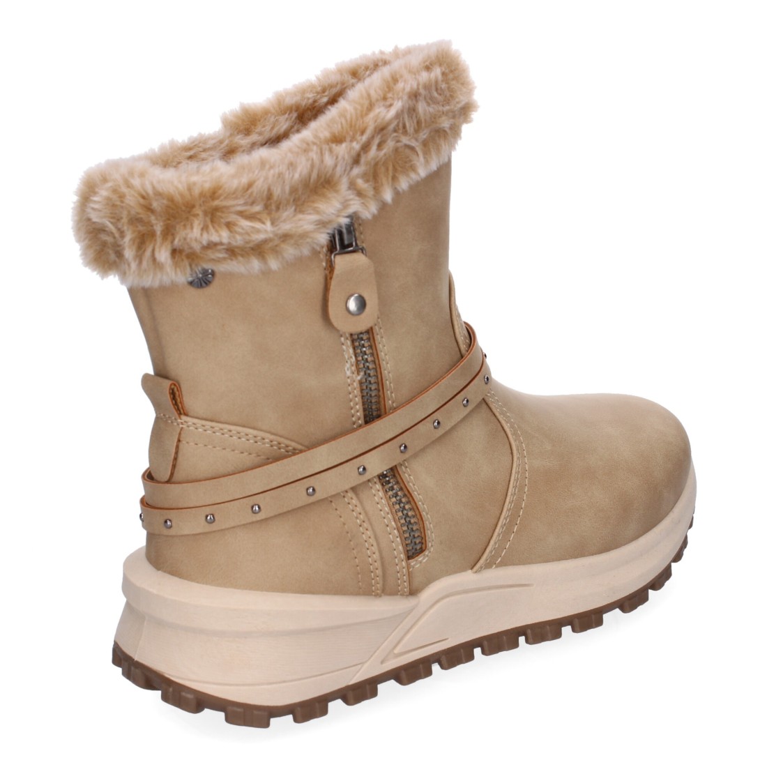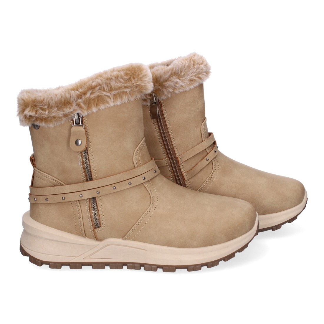 Botines de Invierno Planos para Mujer, Comodos y Elegantes, Diseño Moderno, Detalle de Pelo y Adorno de Correa, Cierre de Cremallera.