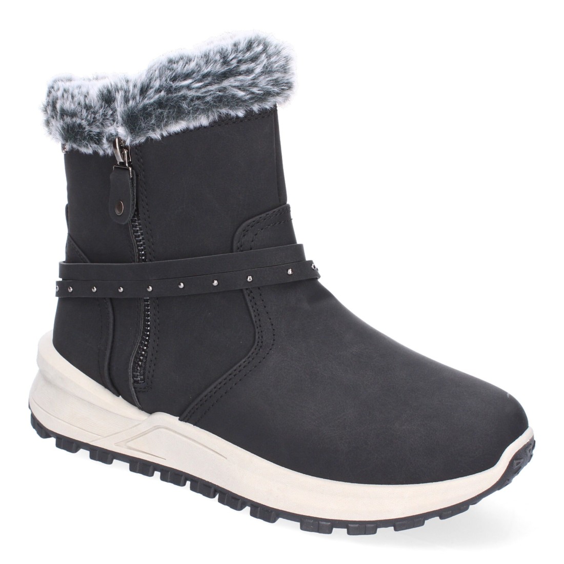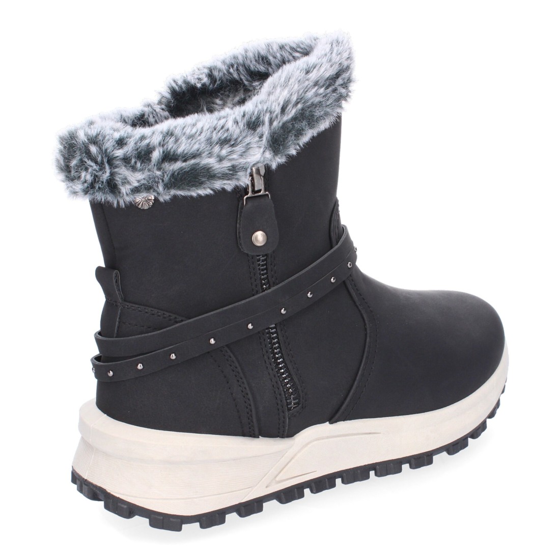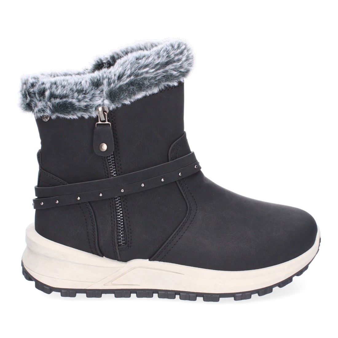 Botines de Invierno Planos para Mujer, Comodos y Elegantes, Diseño Moderno, Detalle de Pelo y Adorno de Correa, Cierre de Cremallera.