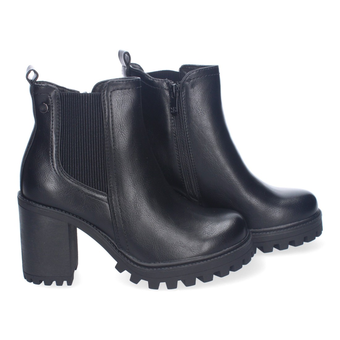 Botines de Tacón para Mujer, Comodos y Elegantes, Diseño Moderno, Suela Dentada, Elastico en la Caña y Cierre de Cremallera Lateral.