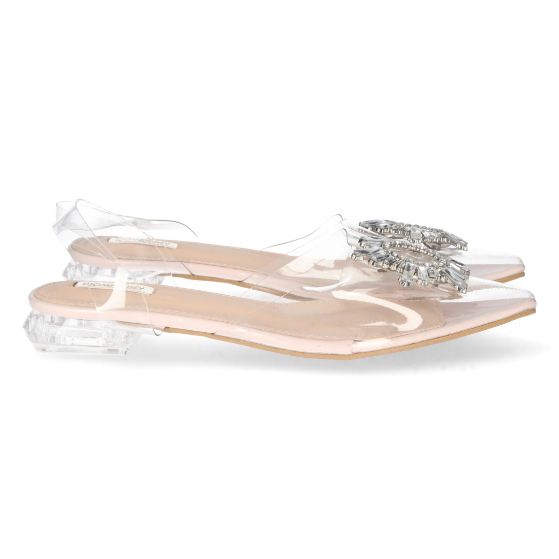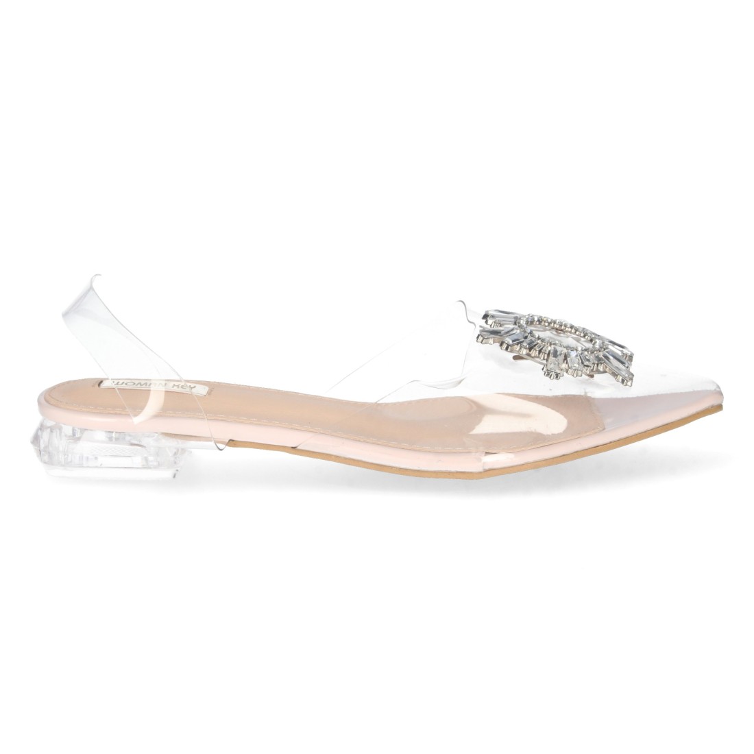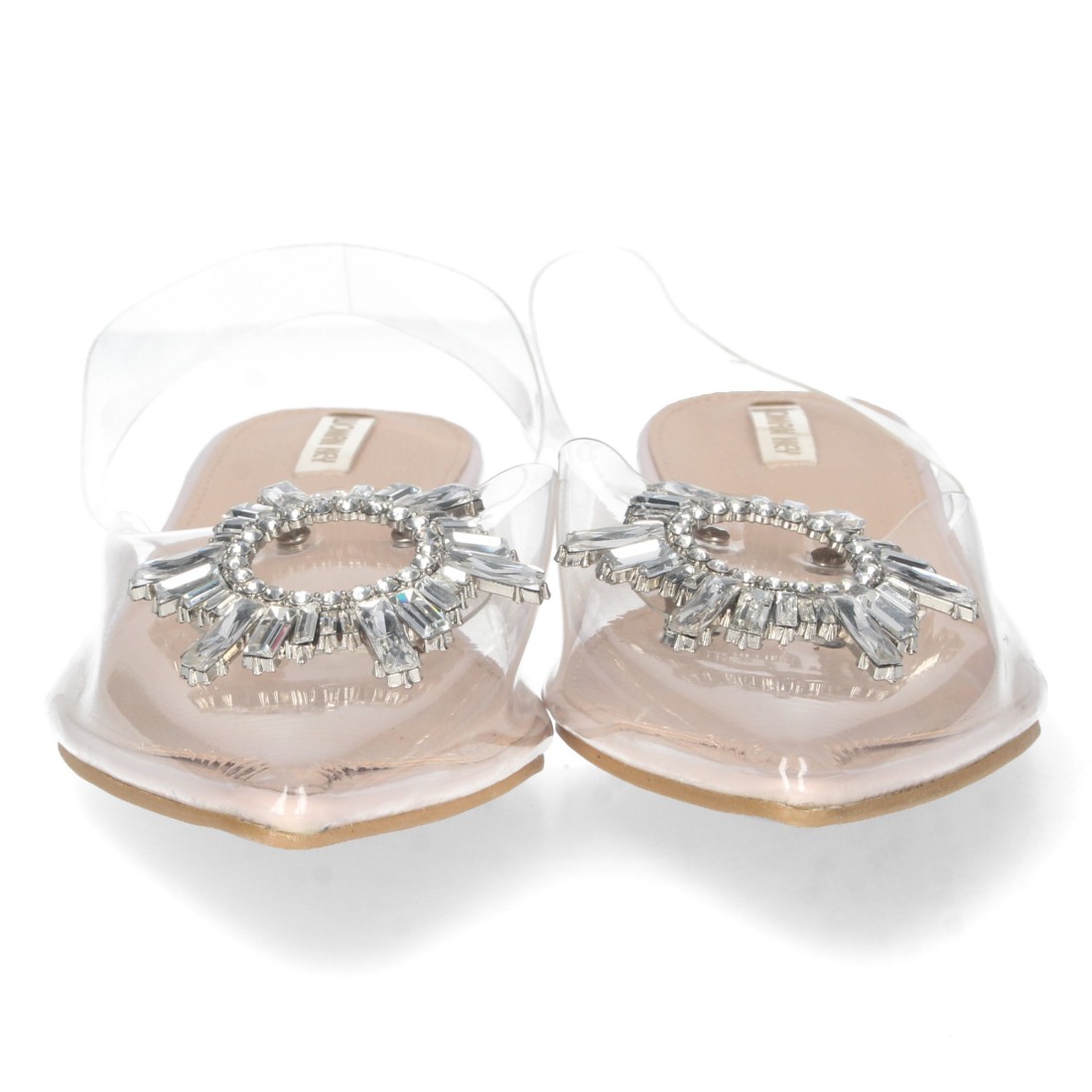 Sandalia Plana de Mujer, Comoda, con Material Transparente de Vinilo, de Punta Fina, y Agarre en el Talón