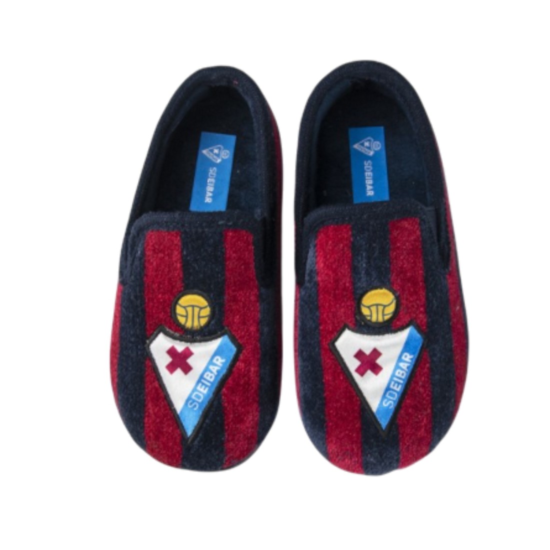 Zapatillas de estar por casa del SD Eibar con diseño clásico con el escudo oficial del club, fabricadas en España con materiales resistentes. Suela antideslizante.