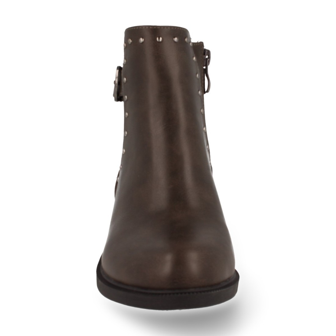Botin de mujer comodos con plataforma con cierre de cremallera y tira con hebilla y adornos metalizados. Otoño invierno 2019