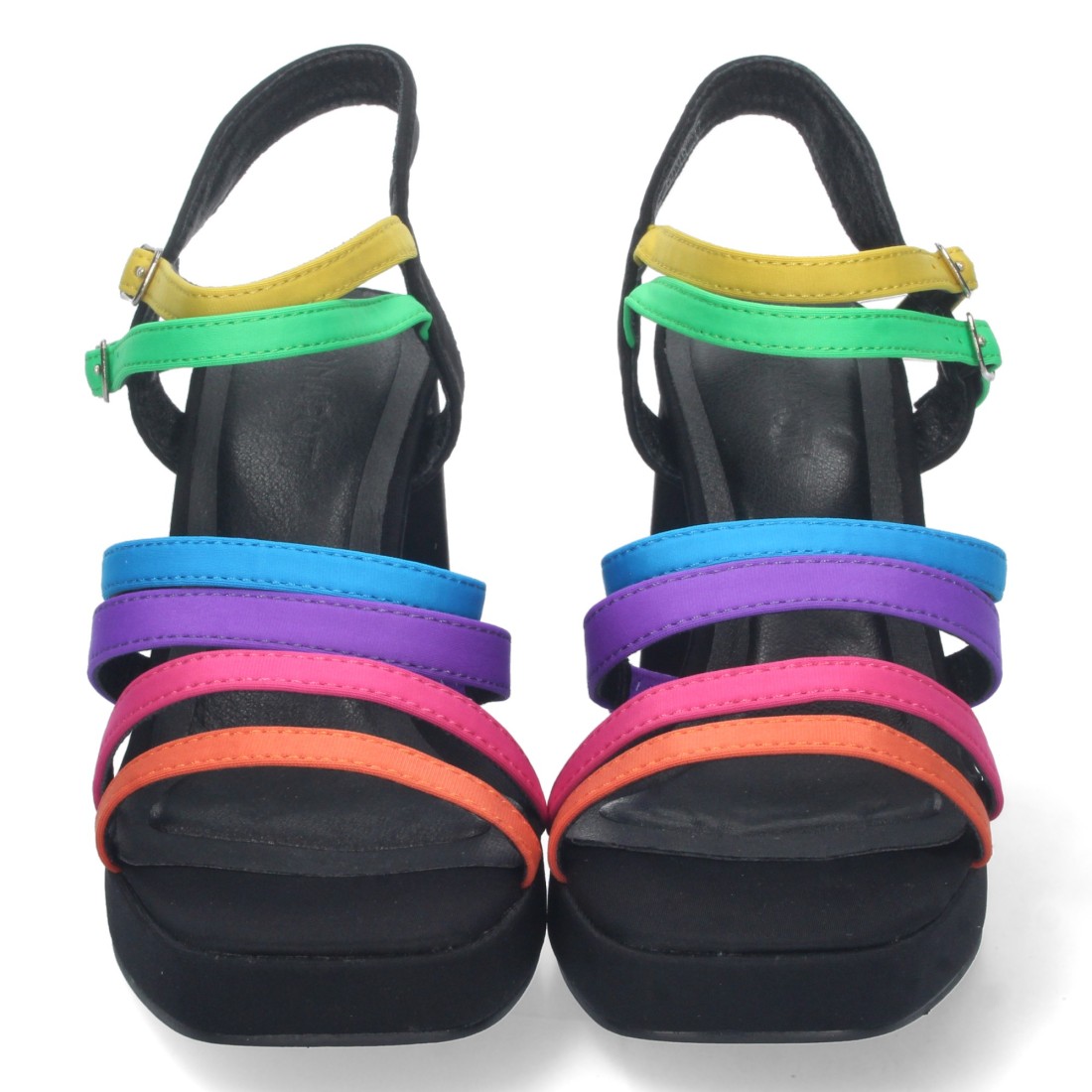 Sandalia de Tacon para Mujer, Comoda, con Pala de Tiras Multicolor, y Doble Cierre de Hebilla
