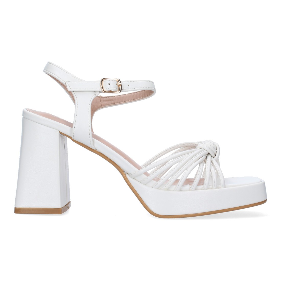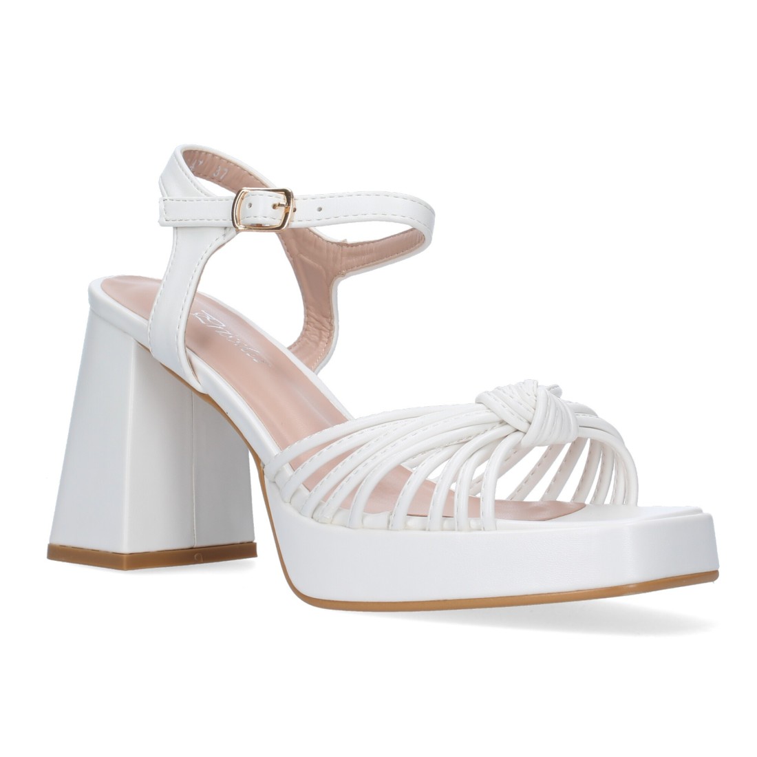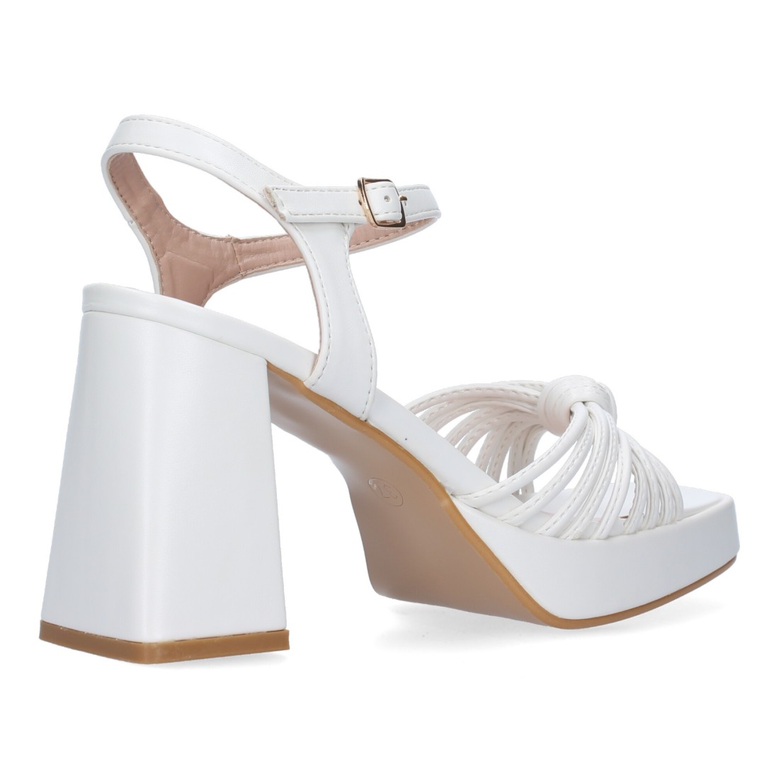 Sandalia de Tacon Ancho para Mujer, Comodo, Pala con Tiras Enredadas, y Cierre de Hebilla