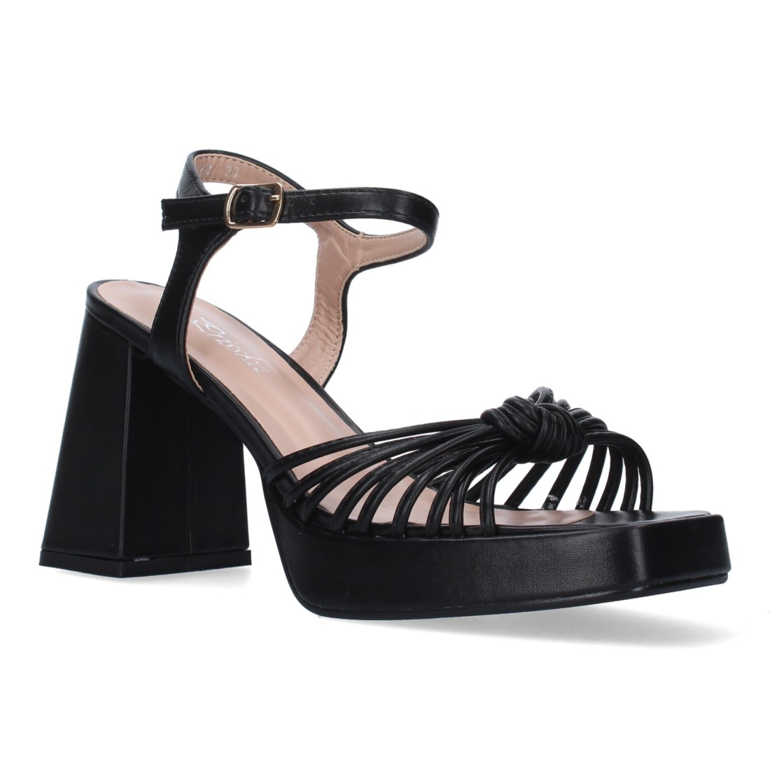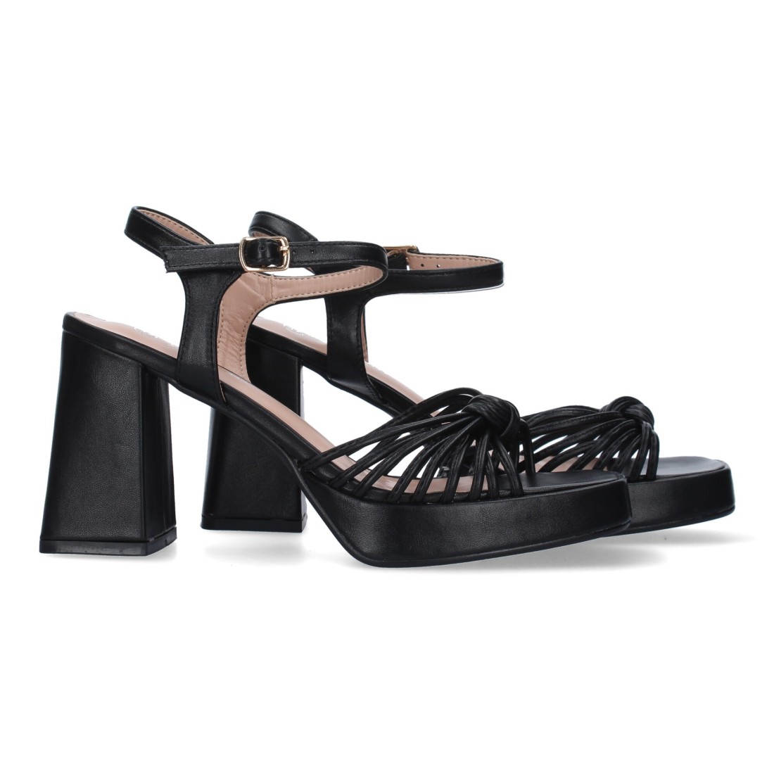 Sandalia de Tacon Ancho para Mujer, Comodo, Pala con Tiras Enredadas, y Cierre de Hebilla