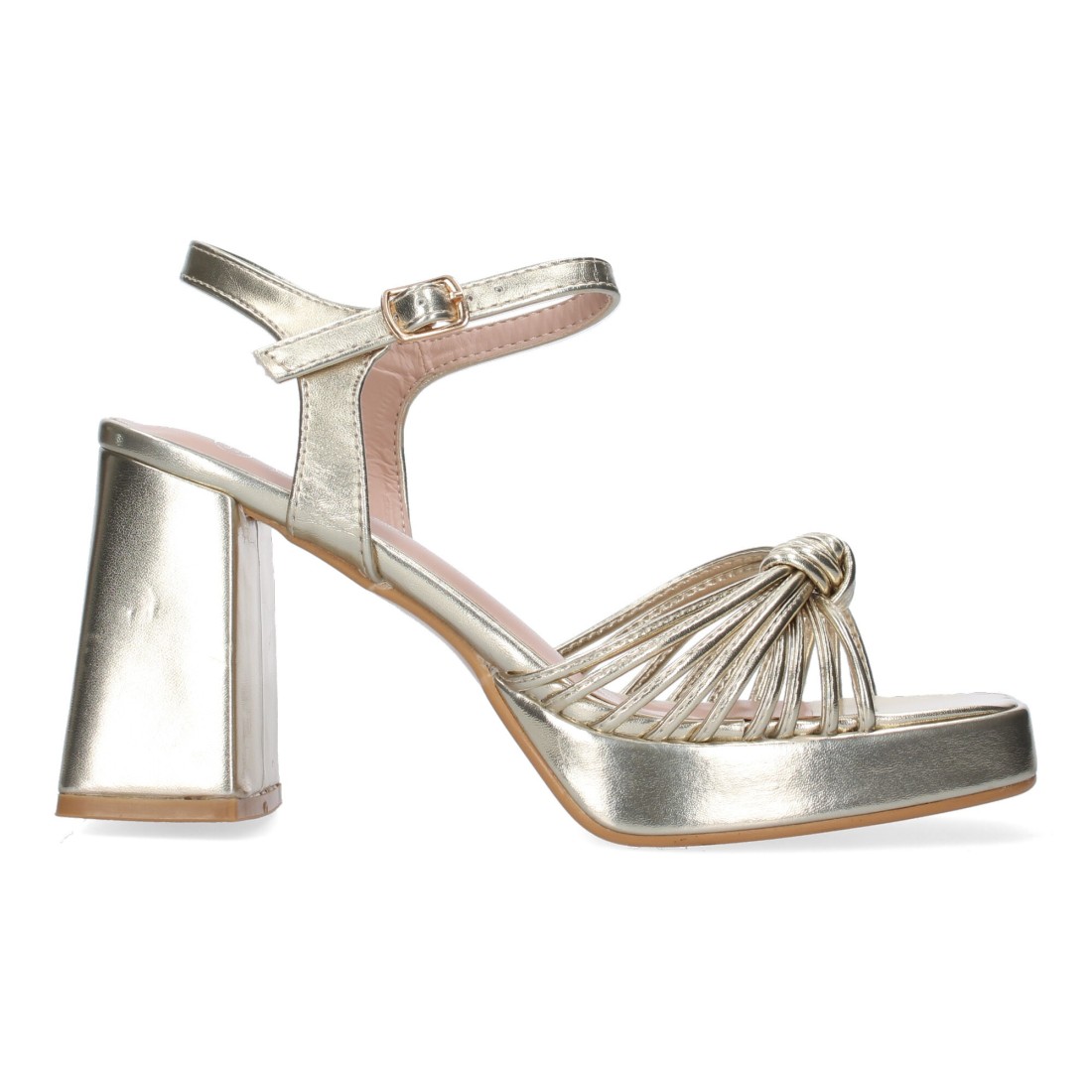 Sandalia de Tacon Ancho para Mujer, Comodo, Pala con Tiras Enredadas, y Cierre de Hebilla