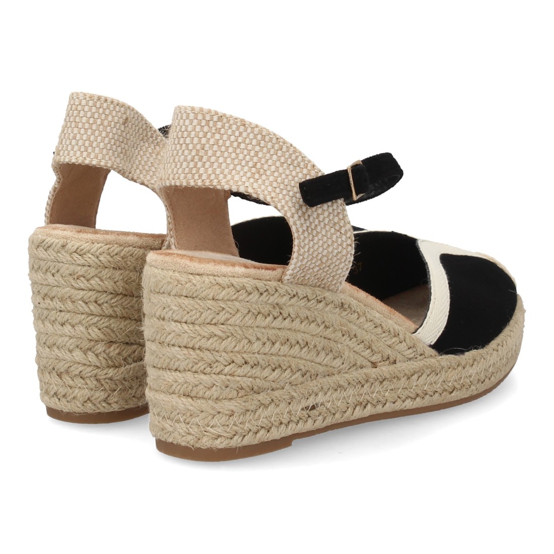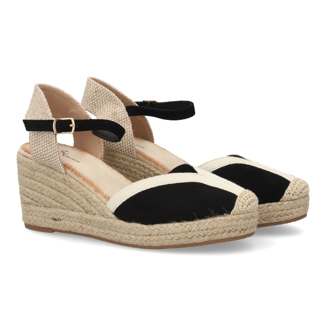 Alpargata de cuña para mujer, diseño artesanal, punta cerrada, cuerre de hebilla y talón abierto, altura de 5 cuerdas. Suela acolchada y cuña cómoda ideal primavera verano.