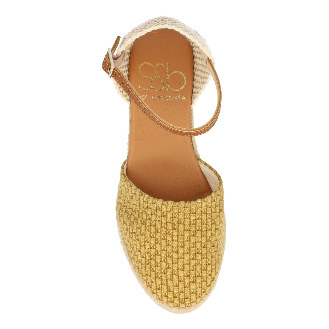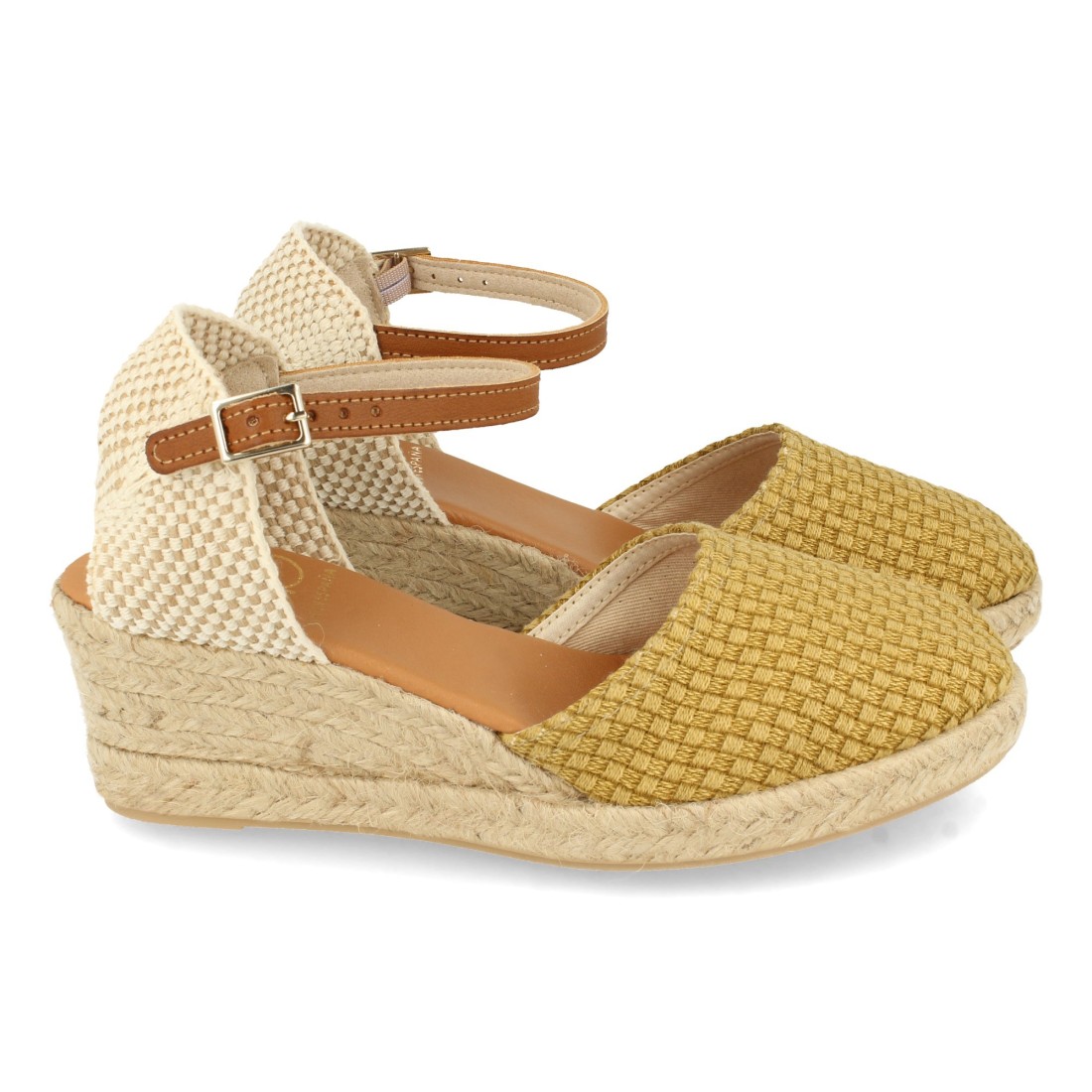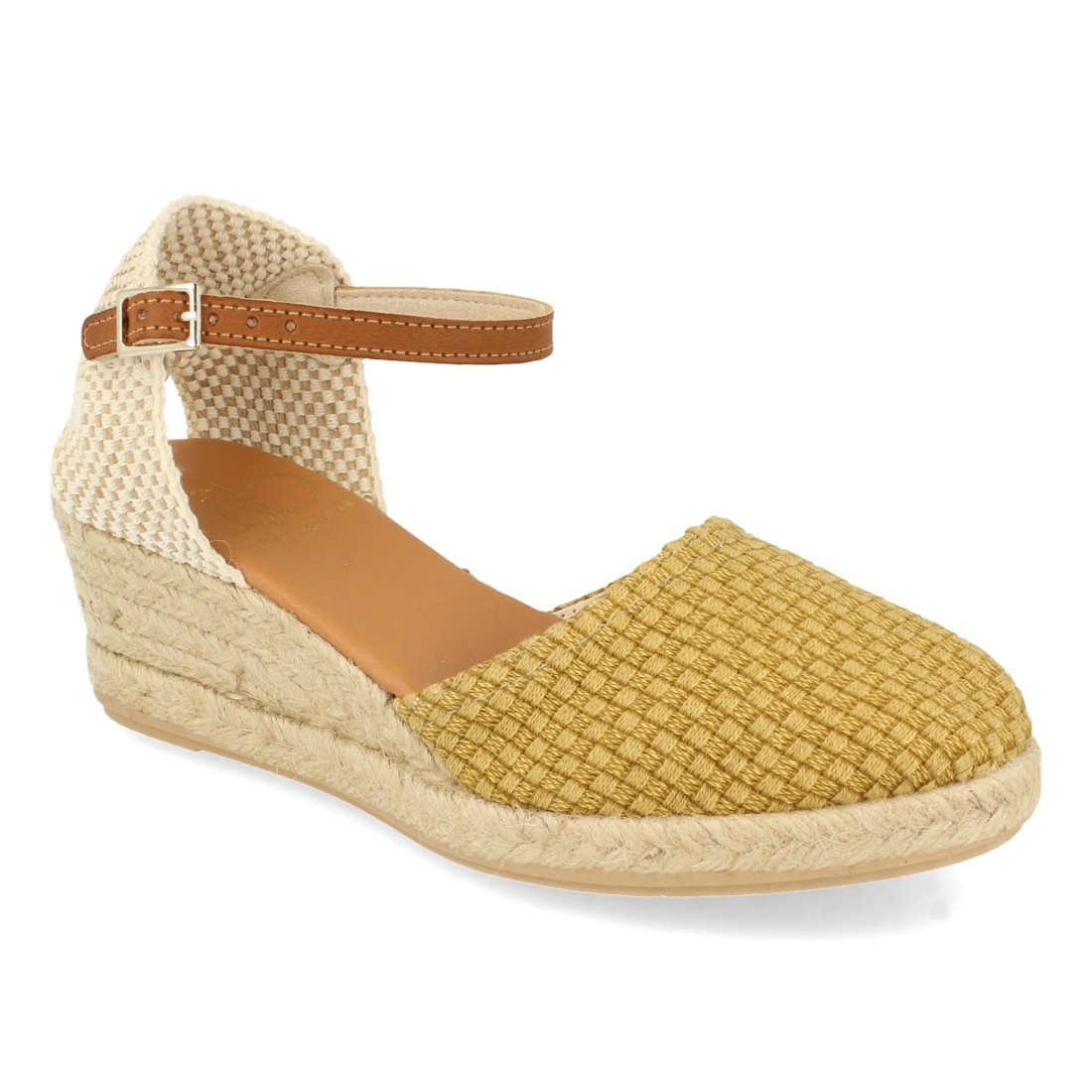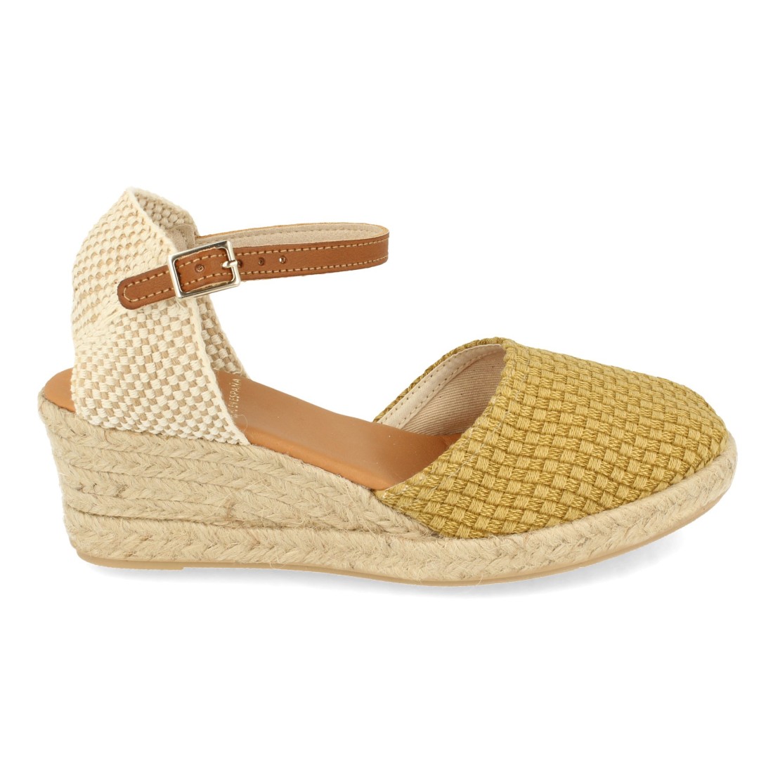 Alpargata de Cuña para Mujer, Sandalia Cerrada estilo Valenciana, Hecha en España, Pala Textil, Yute 4 cuerdas, Cierre de Hebilla, Primavera Verano 2021