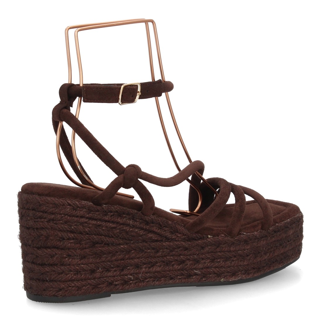 Sandalia de mujer con cuña y diseño de tiras finas, nudos decorativos y plataforma de yute, suela ligera, acolchada y cómoda. Cierre de hebilla, ideal verano.