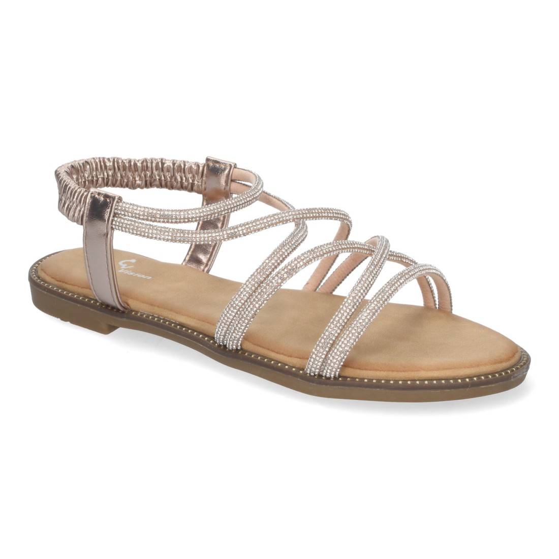 Sandalias Planas de Verano para Mujer, Elegantes y Cómodas, con Tiras Entrecruzadas y Adornos Brillantes.
