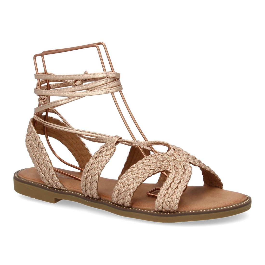 Sandalias planas para mujer, comodas y elegantes, diseño moderno con cordones atados al tobillo, ideales para primavera-verano.