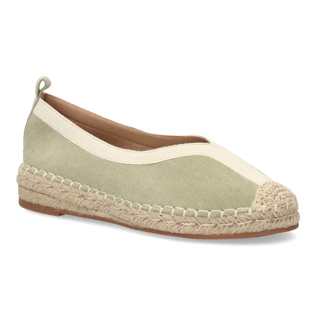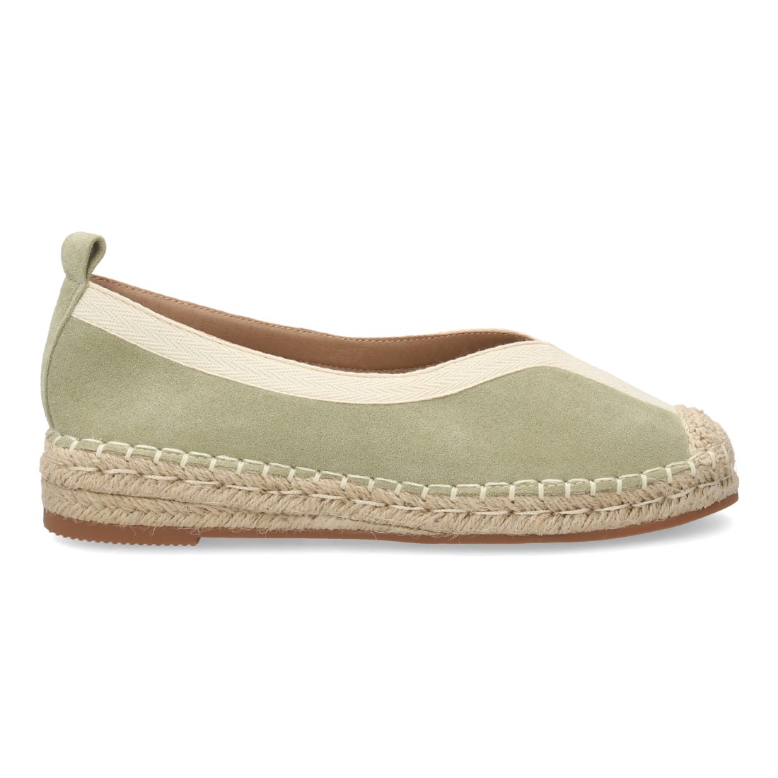 Alpargata plana de estilo tradicional para mujer, punta cerrada, sin cierre. Suela acolchada y cuña cómoda, ribete y la suela de yute, ideal primavera verano.