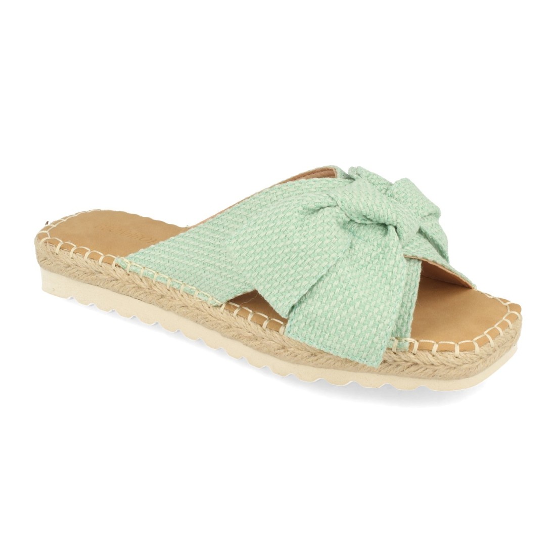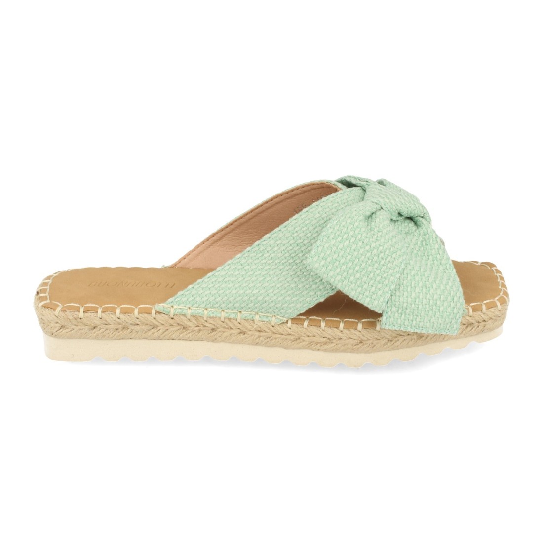 Sandalia Plana de Mujer, Forrado con Yute, y Pala de Rafia con Lazo, Primavera Verano 2021