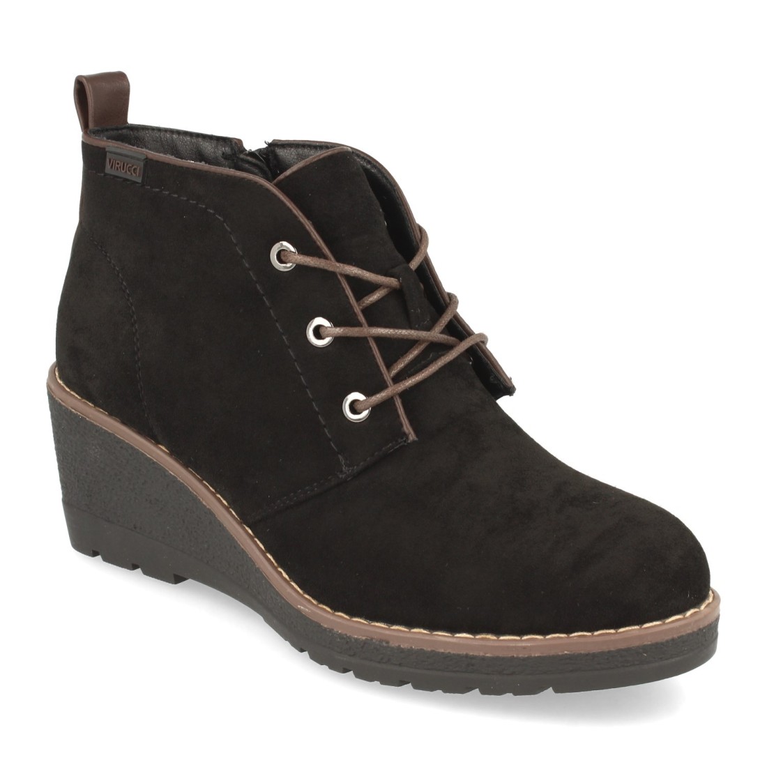 Botín para Mujer con Cuña, Estampado Liso, Comodas, y Cierre de Cordones, Otoño Invierno 2020
