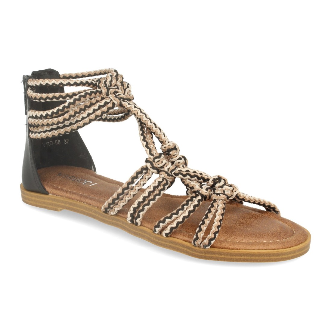 Sandalia de Cuerda, Plana para Mujer, Estilo Bohemio, con Cierre de Cremallera en Talon Primavera Verano 2020
