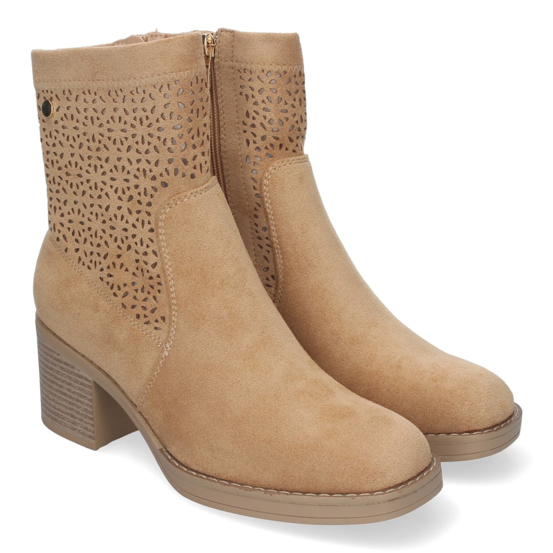 Botines de Mujer Primavera Verano Elegantes y Comodos con Tacón Ancho, Diseño Perforado con Cremallera Lateral, Ideal para Cualquier Ocasión
