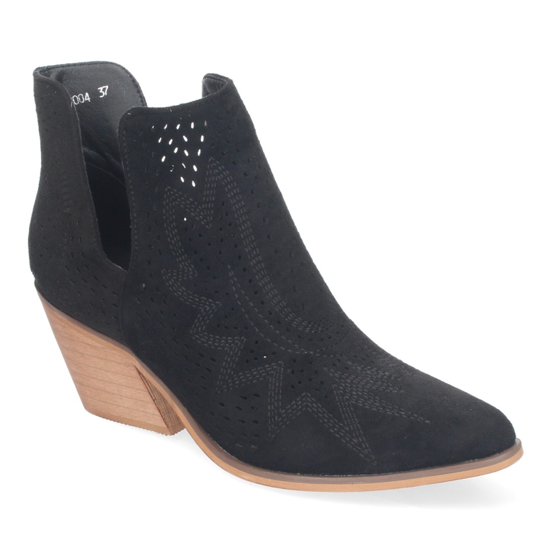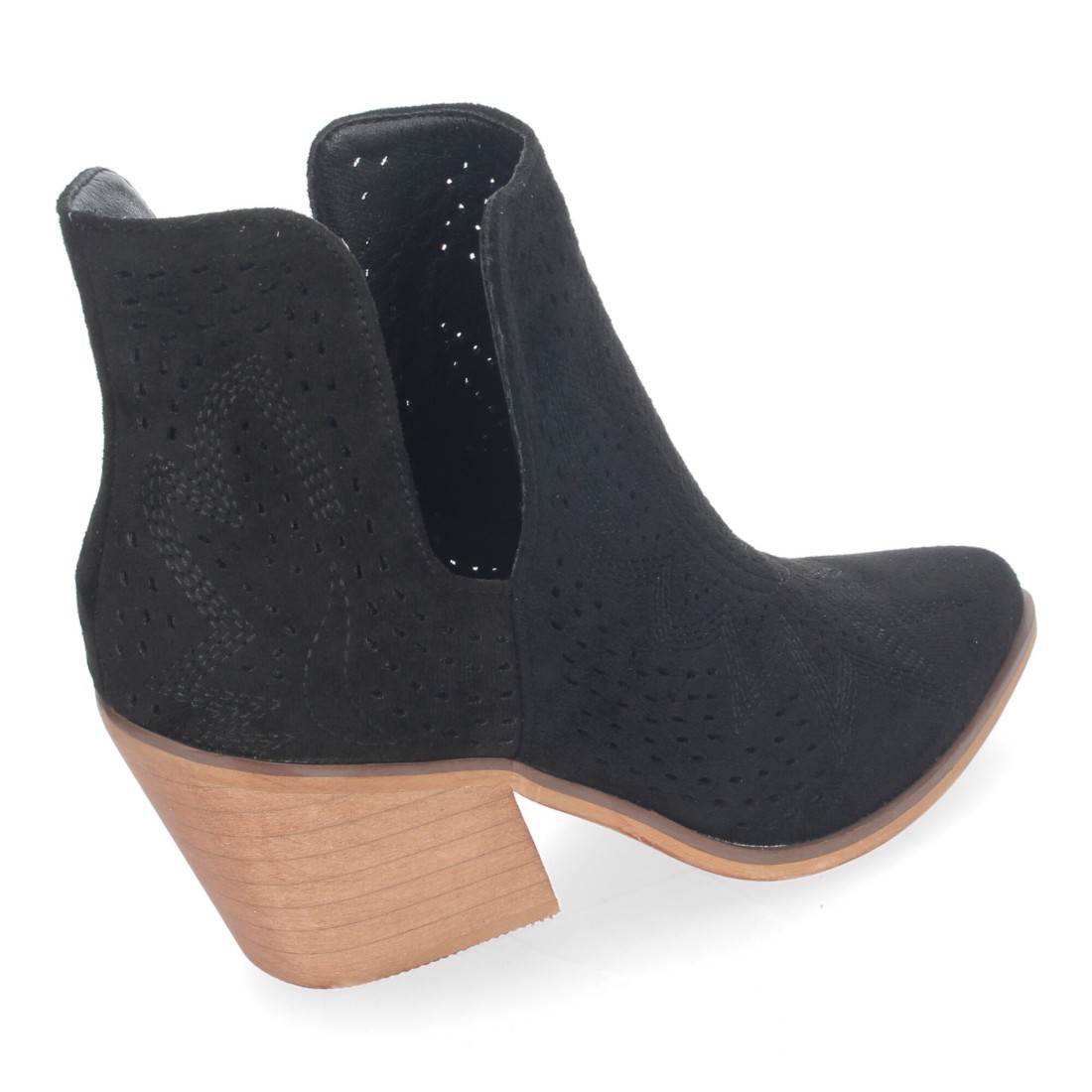 Botines de Tacón Campero para Mujer Primavera Verano Elegantes y Comodos, Diseño Perforado con Estampado en la pala, perfectos para cualquier ocasión.
