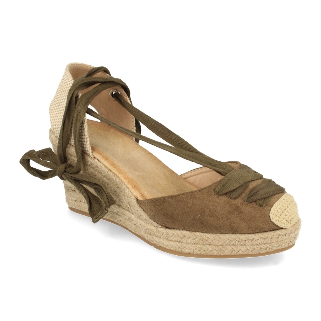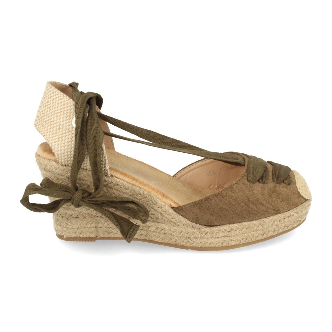 Sandalia de Cuña con Yute, Estilo Valenciana, Pala con Tiras, y Cierre de Cordones en el Tobillo, Primavera Verano 2021