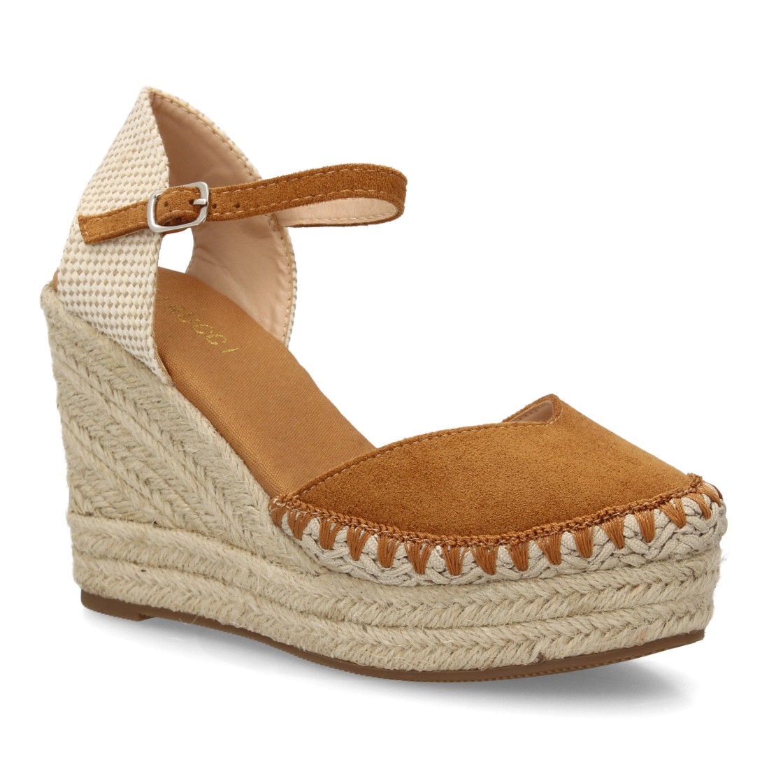 Alpargata sandalia de mujer con cuña de esparto y detalle decorativo en la pala, para mujer, Cierre de hebilla ajustable, talon abierto, ideal primavera verano.