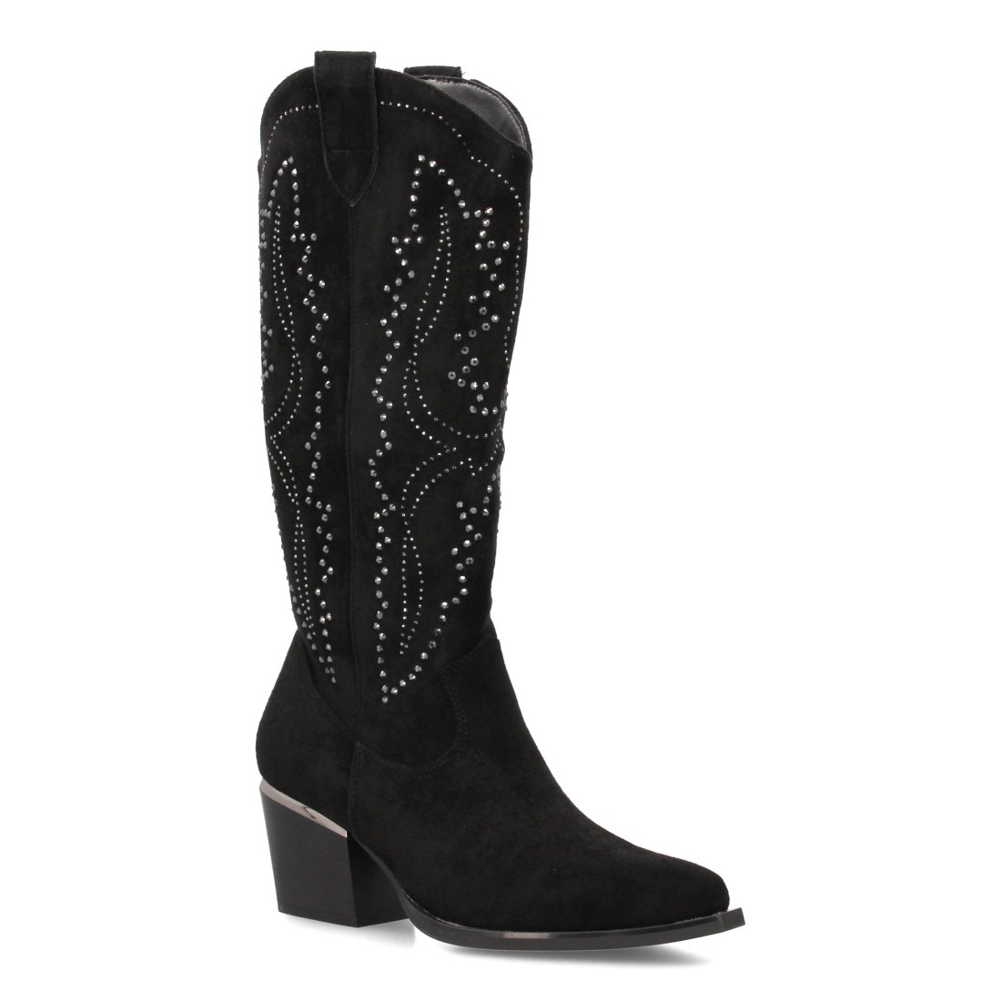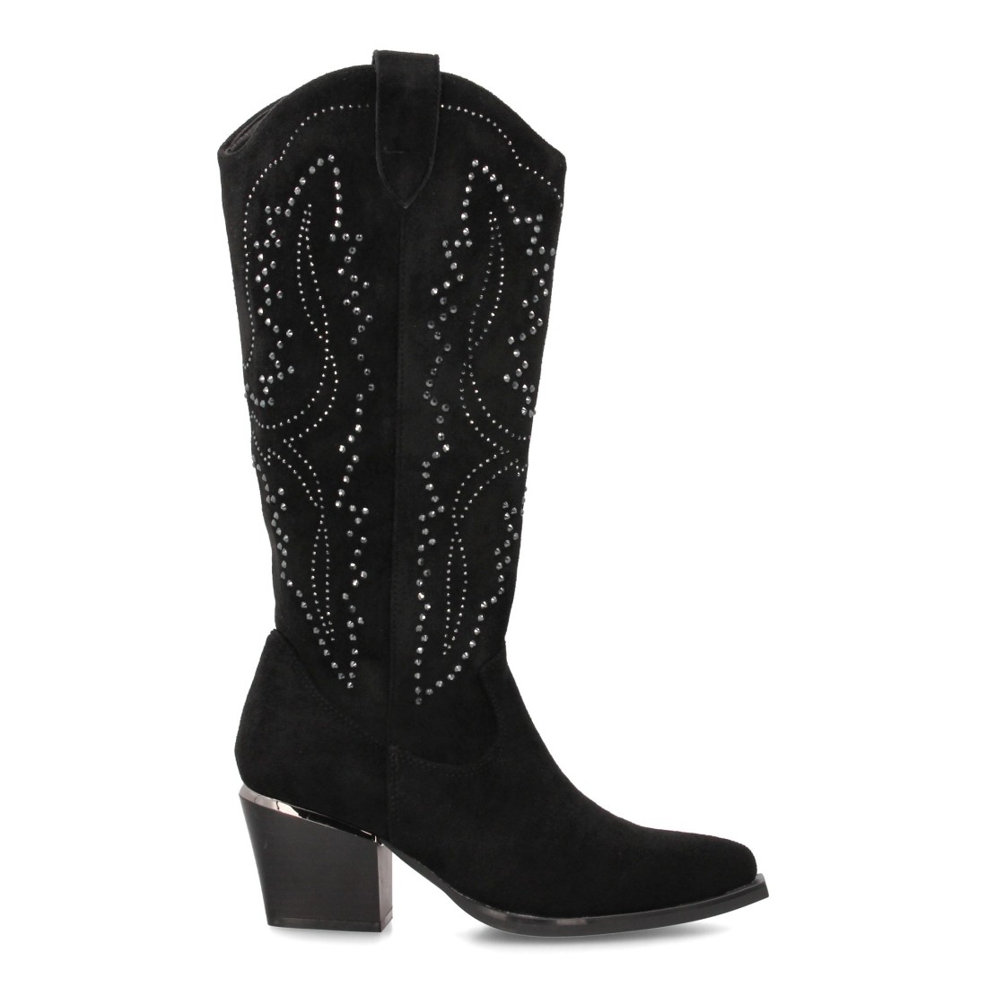 Botas de mujer con diseño elegante y detalles brillantes, ideales para destacar en cualquier ocasión con su elegante silueta, sujeción cómoda gracias a su tacón cubano de 6cm. Estilo cowboy con cierre lateral de cremallera.