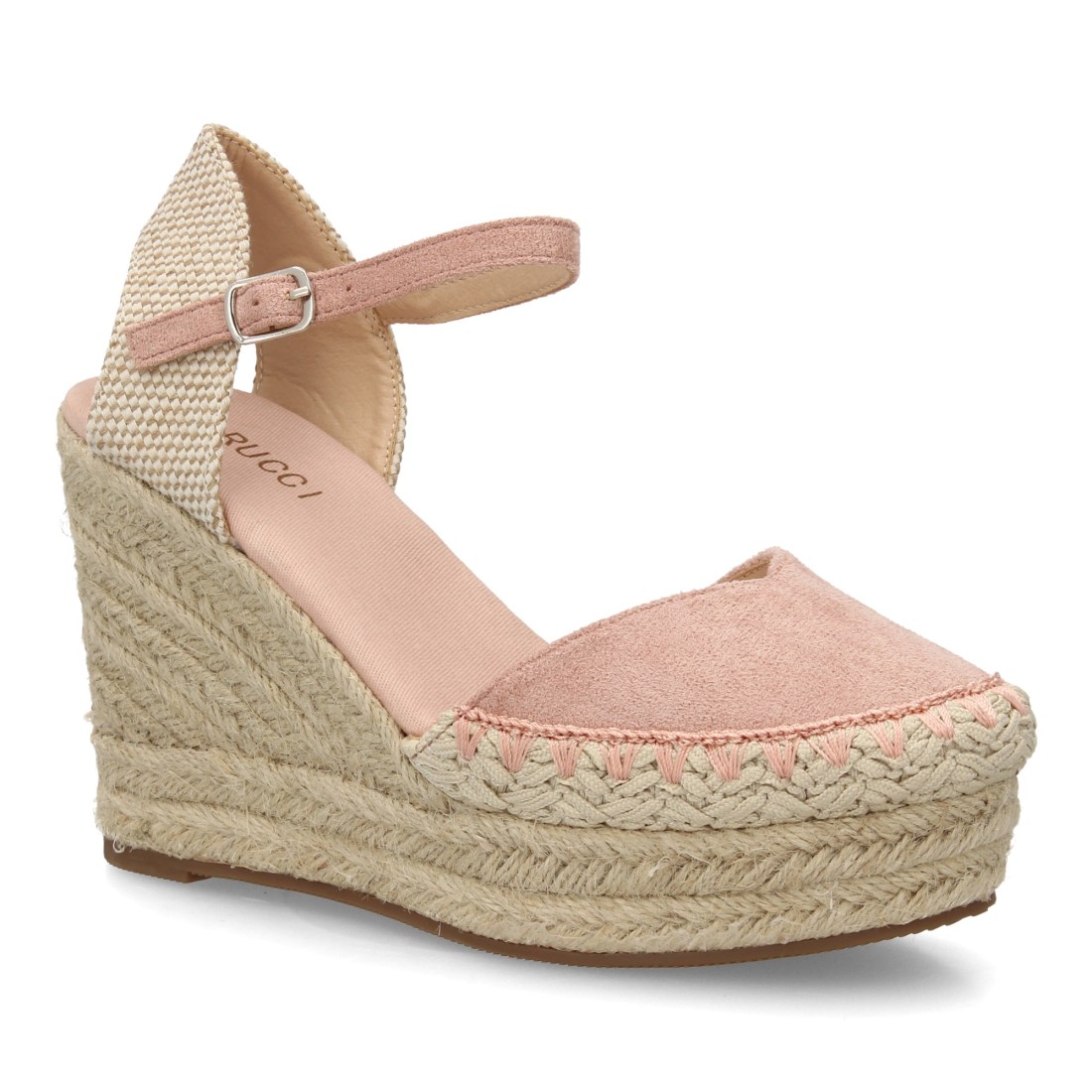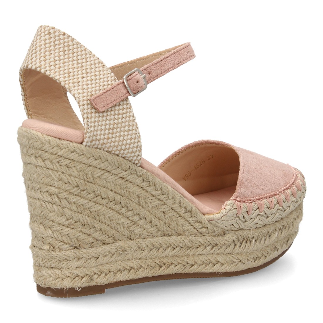 Alpargata sandalia de mujer con cuña de esparto y detalle decorativo en la pala, para mujer, Cierre de hebilla ajustable, talon abierto, ideal primavera verano.