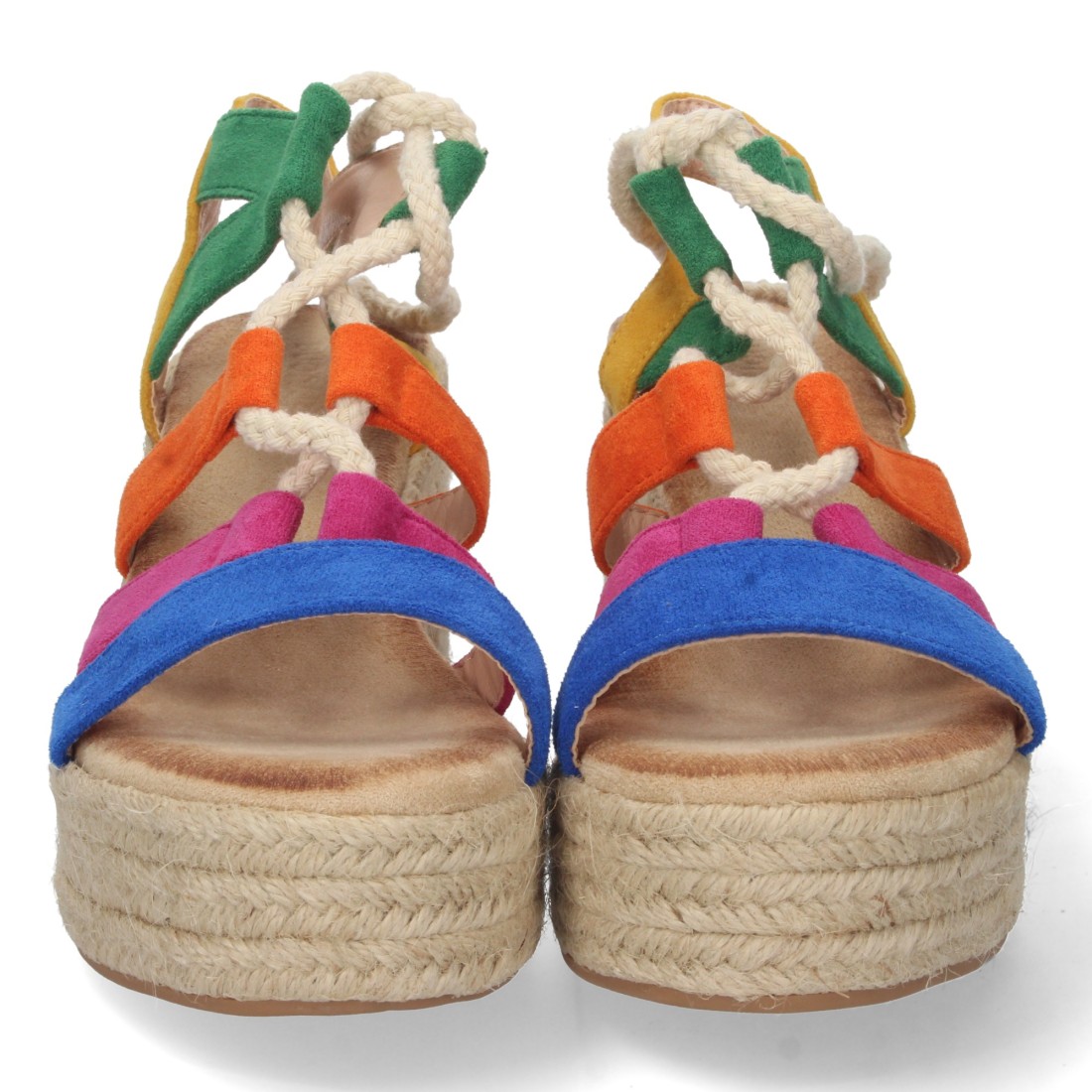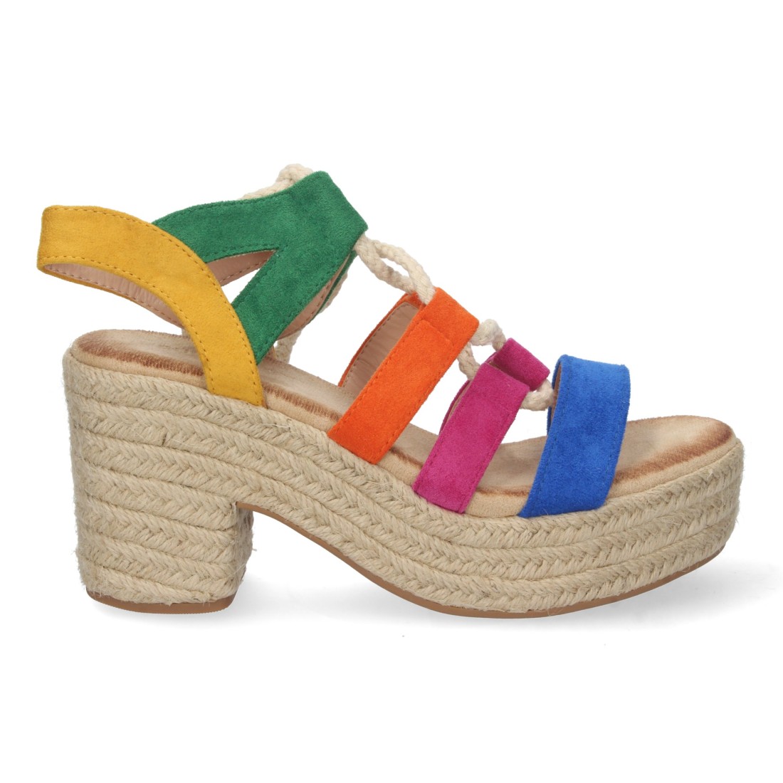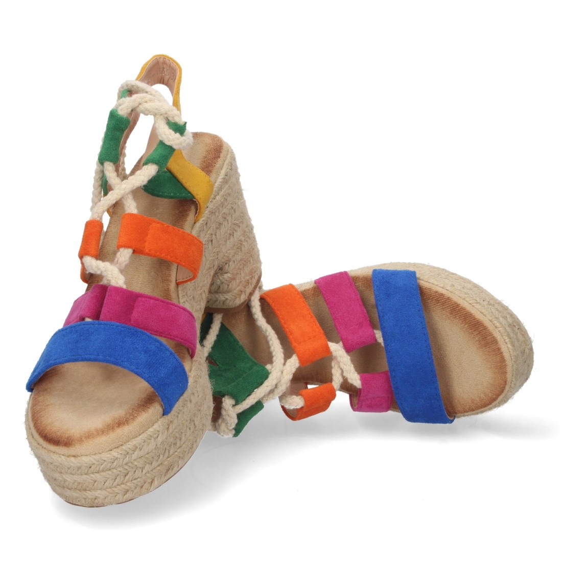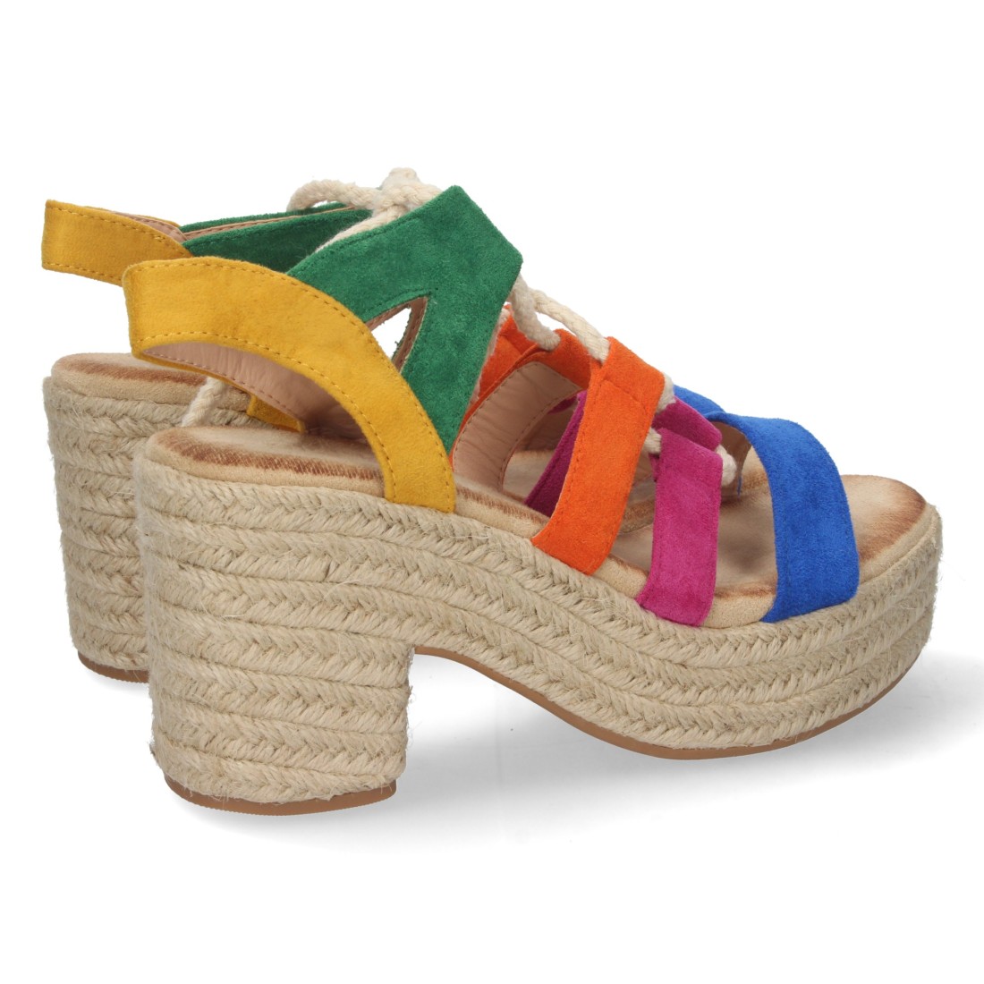 Sandalia de Tacón y Plataforma para Mujer, Forrada de Yute, Multicolor, y Cierre de Cordones, Primavera Verano 2023