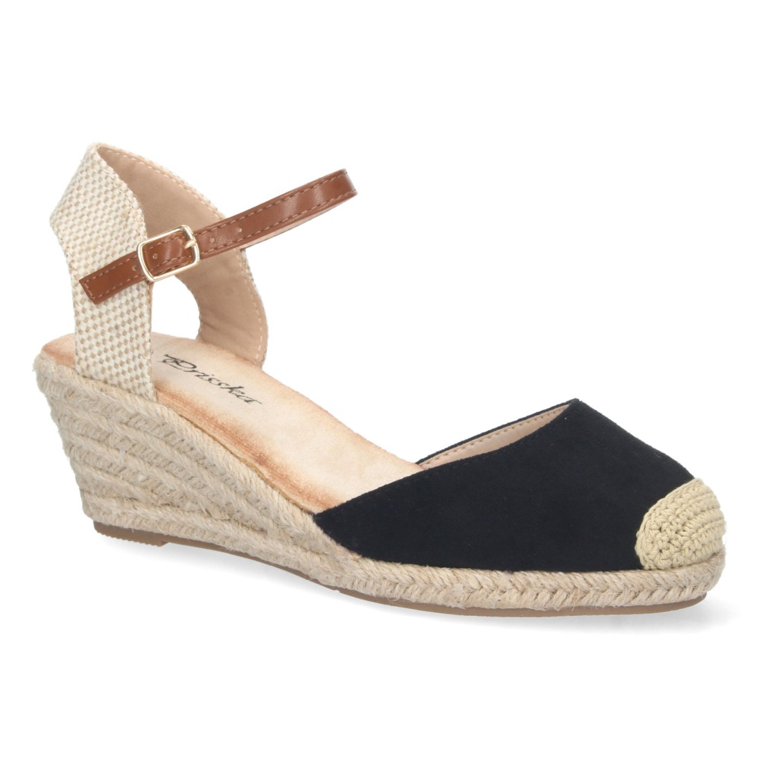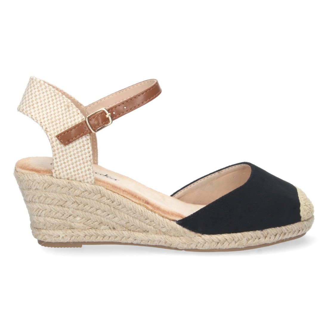 Sandalia de Cuña para Mujer, Estilo Valenciana, Forrada de Yute, Pala Cerrada, y Cierre de Hebilla, Primavera Verano 2023