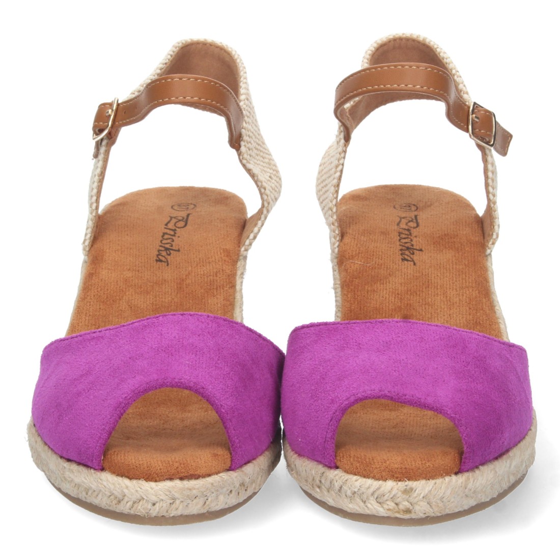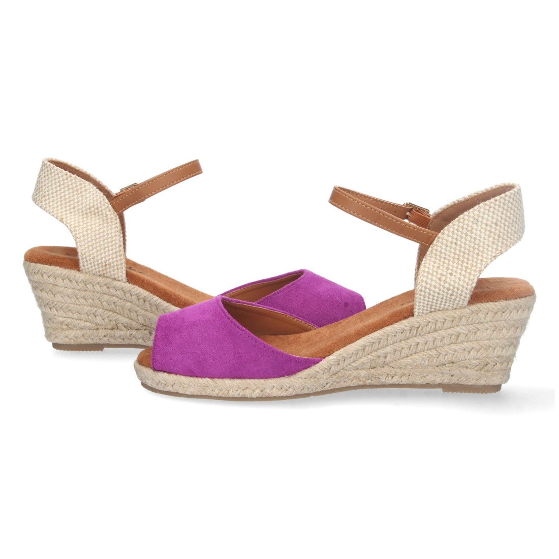 Sandalia de Cuña para Mujer, Estilo Valenciana, Forrada de Yute, Pala Abierta, y Cierre de Hebilla, Primavera Verano 2023