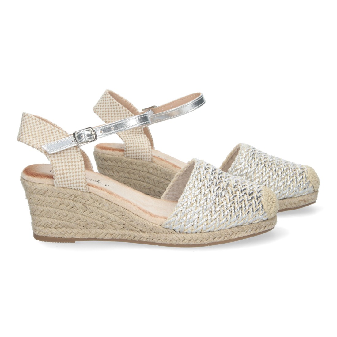 Sandalia de Cuña para Mujer, Estilo Valenciana, Forrada de Yute, Pala de Rafia, y Cierre de Hebilla