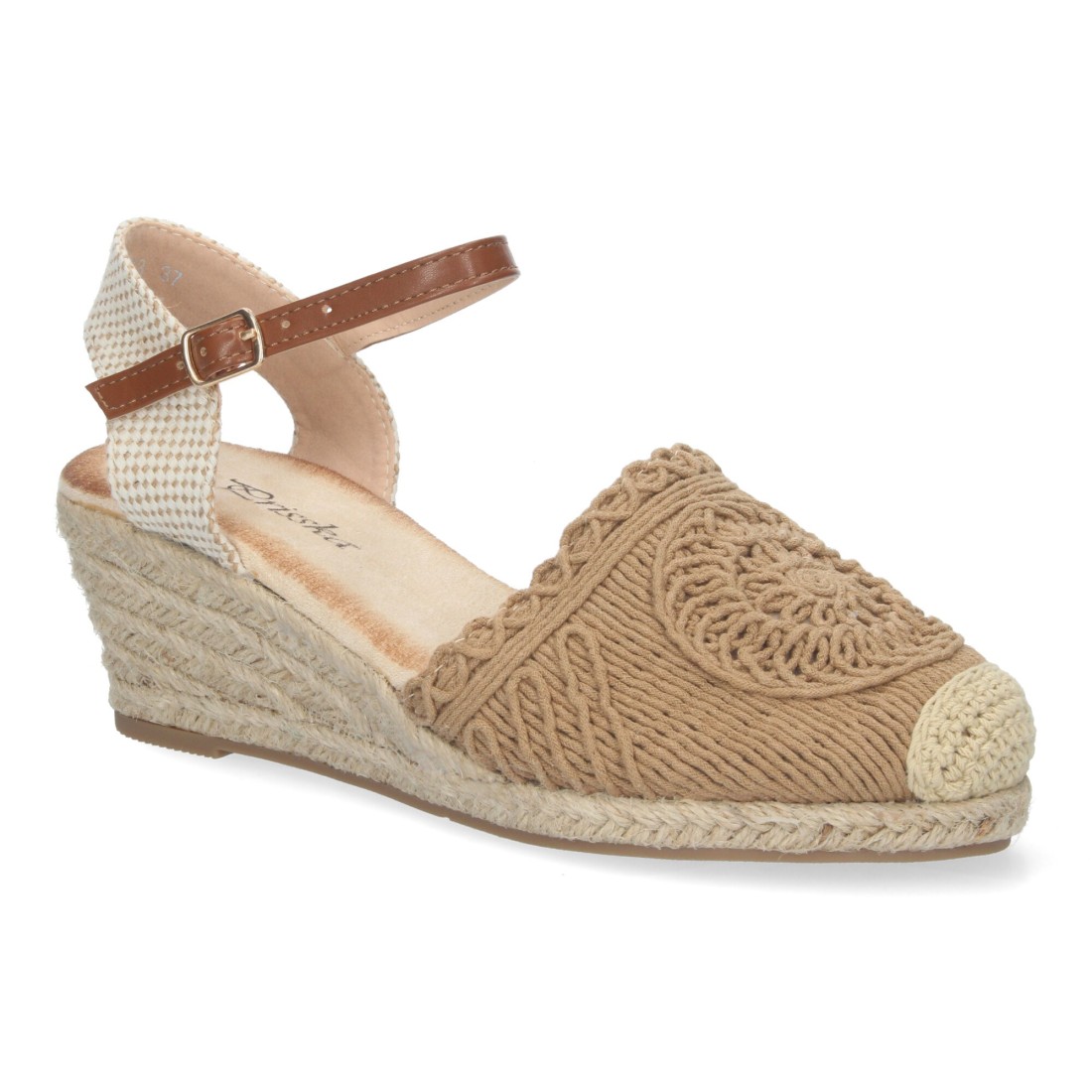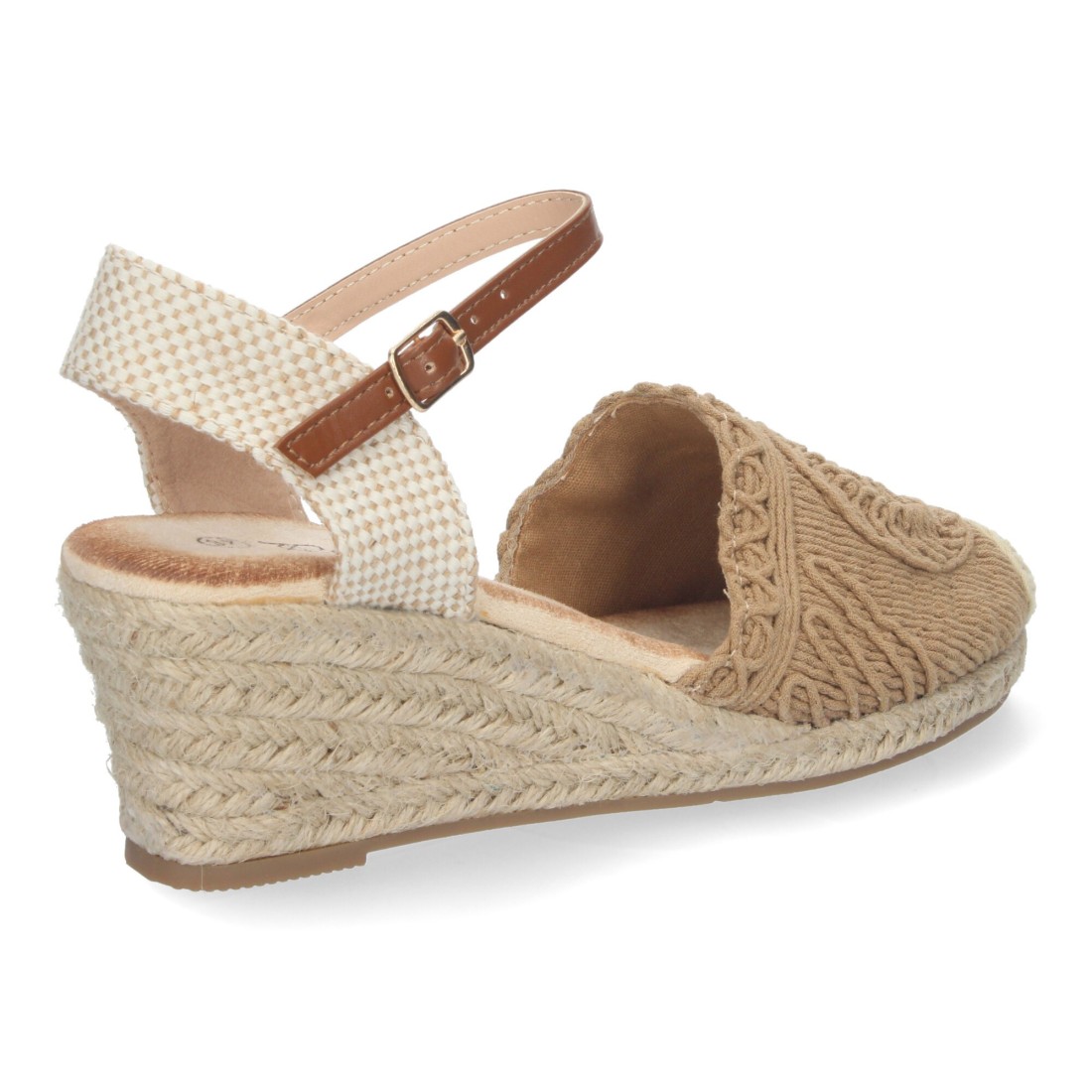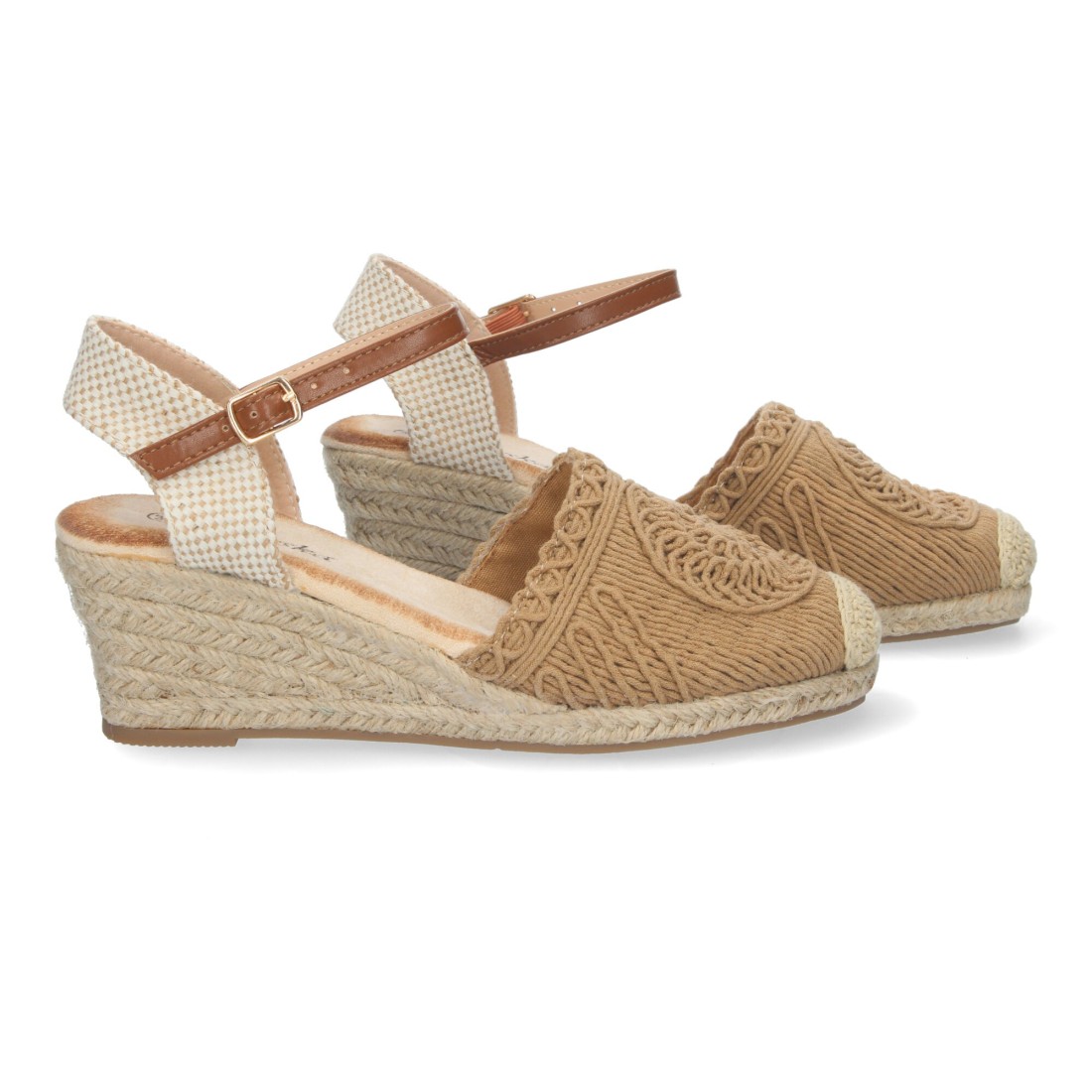 Sandalia de Cuña para Mujer, Estilo Valenciana, Forrada de Yute, Pala Bordada, y Cierre de Hebilla.