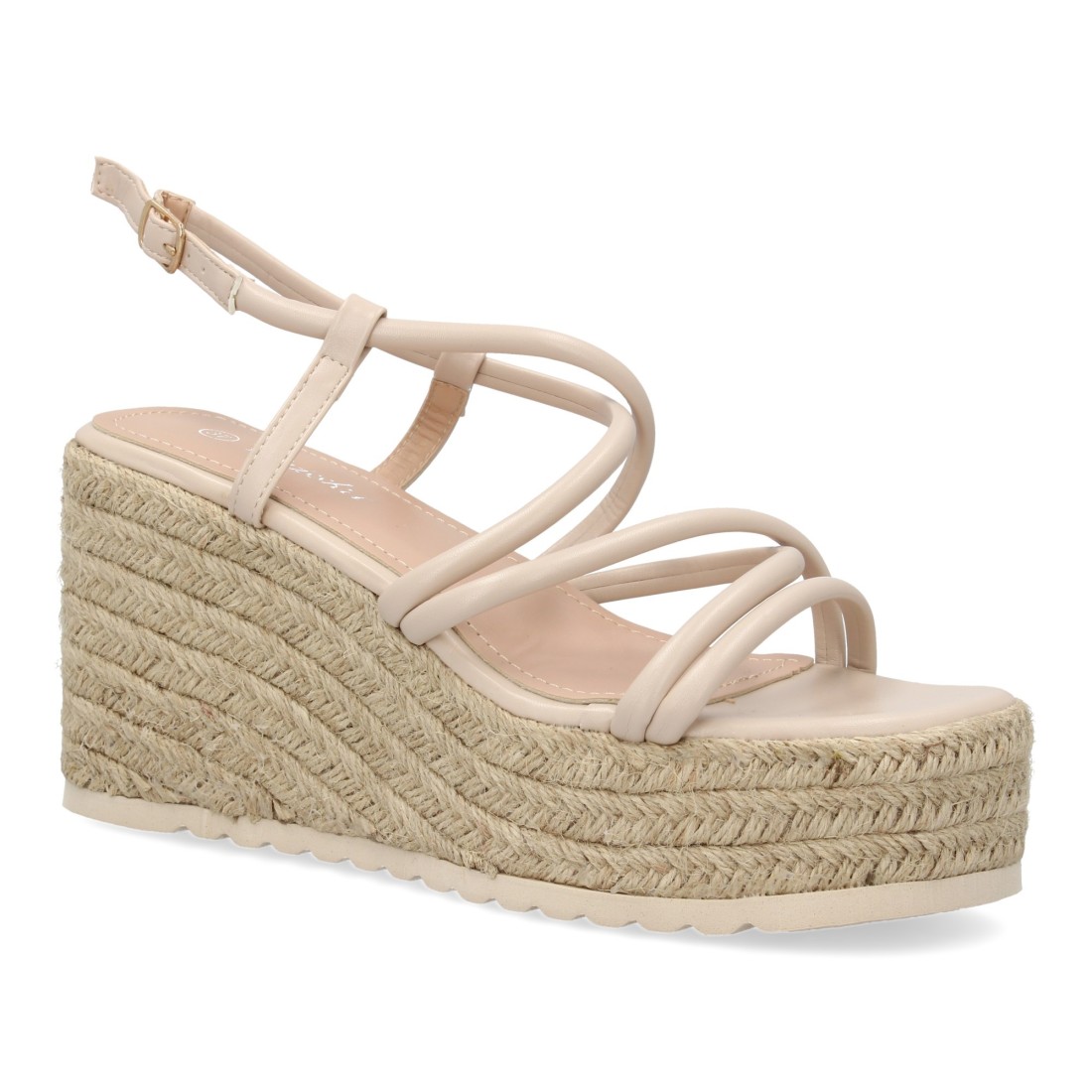 Sandalias de cuña de yute para mujer, comodas y elegantes diseño moderno con tiras cruzadas en la pala con cierre de hebilla ideales para primavera-verano.