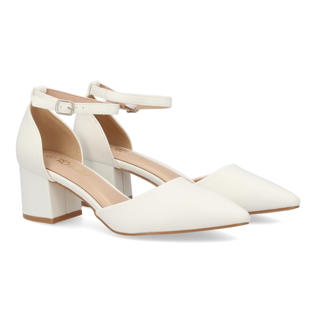 Zapato de tacón medio para mujer con diseño elegante y punta fina, cierre de hebilla. Tacon ancho y cómodo, ideal diario u ocasiones especiales. Talon cerrado.