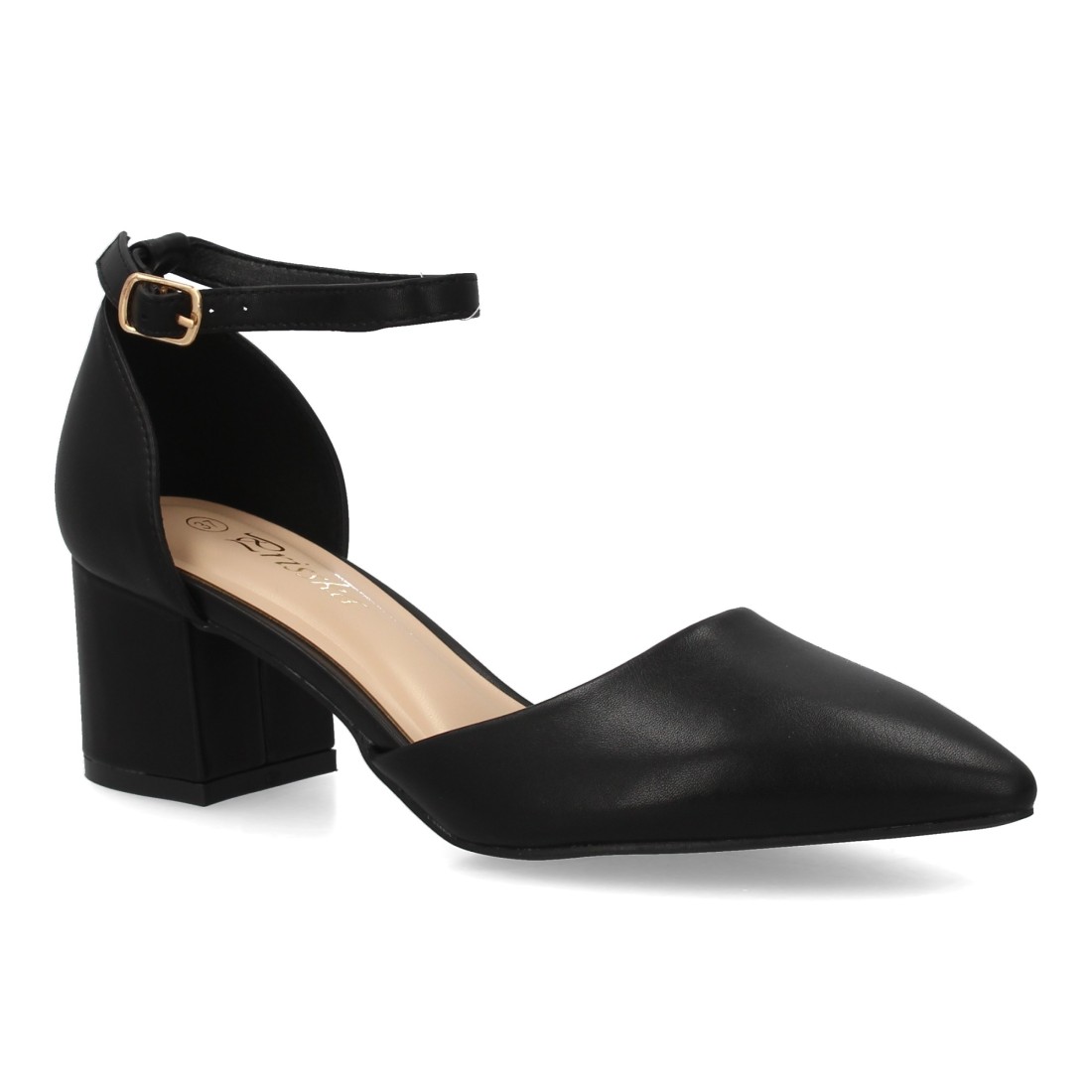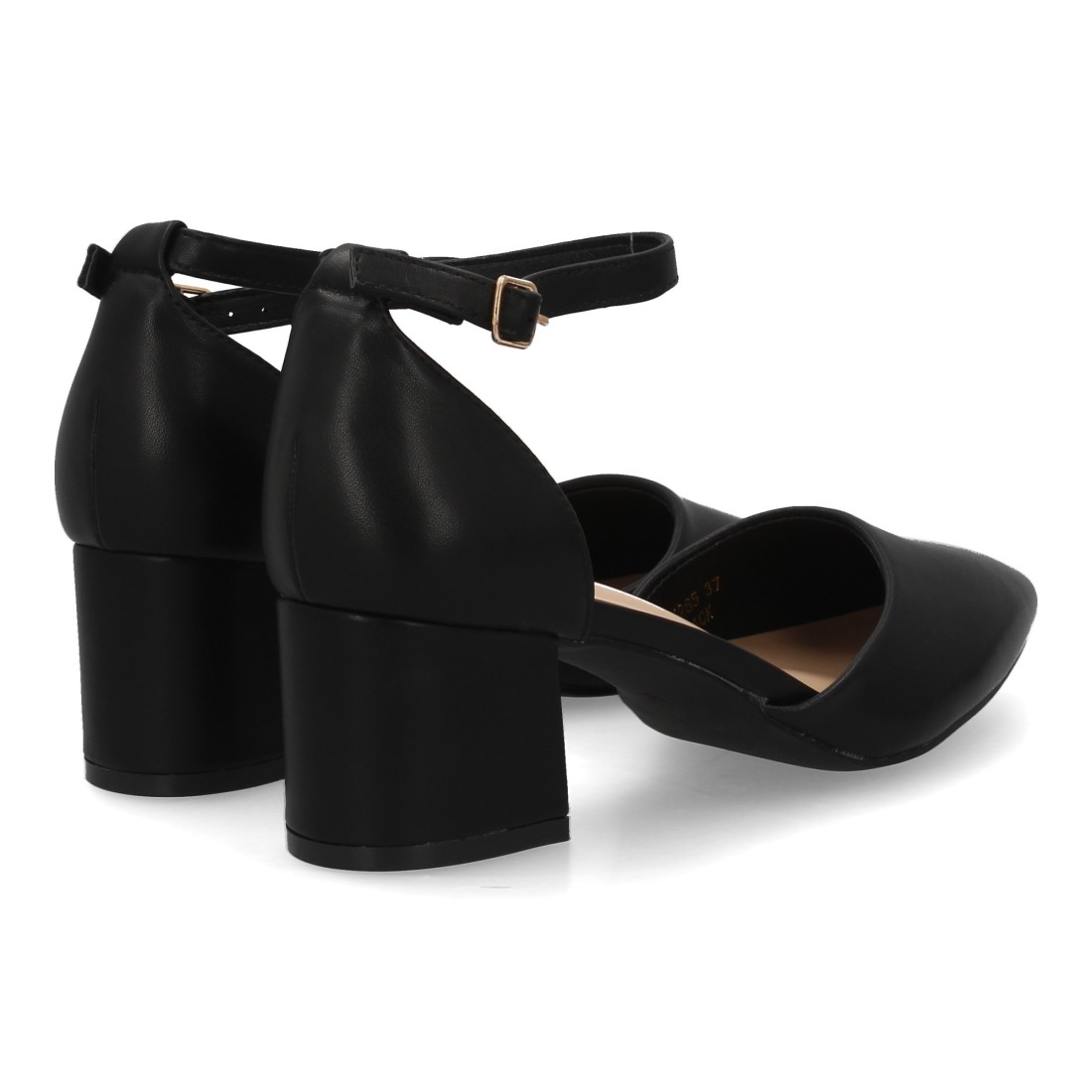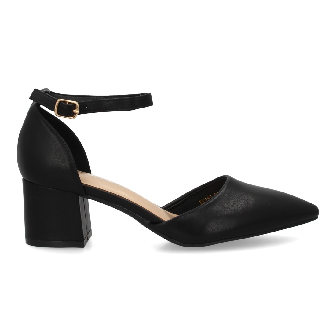 Zapato de tacón medio para mujer con diseño elegante y punta fina, cierre de hebilla. Tacon ancho y cómodo, ideal diario u ocasiones especiales. Talon cerrado.