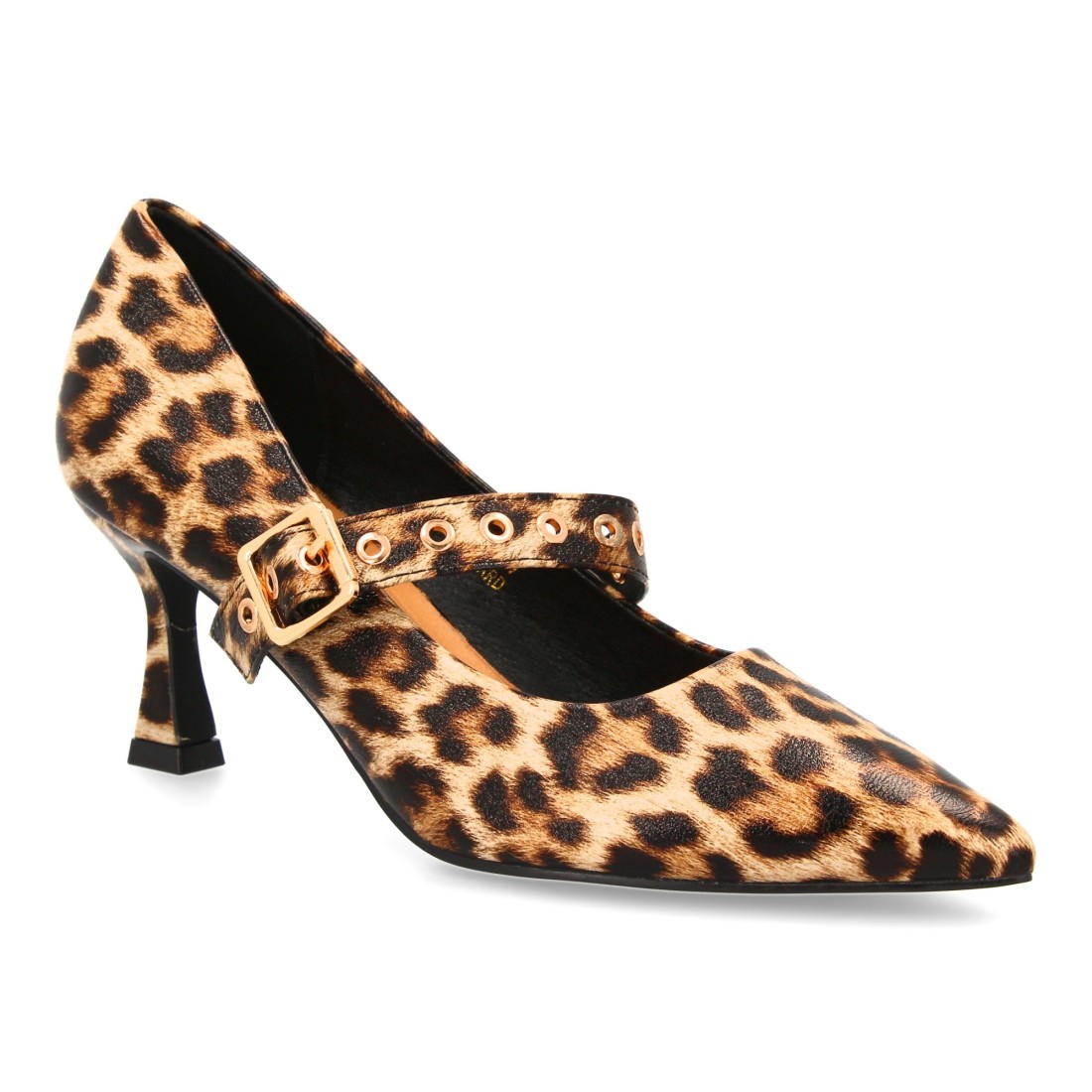 Zapato de salón con pulsera ajustable decorada con hebilla metálica y ojales.
