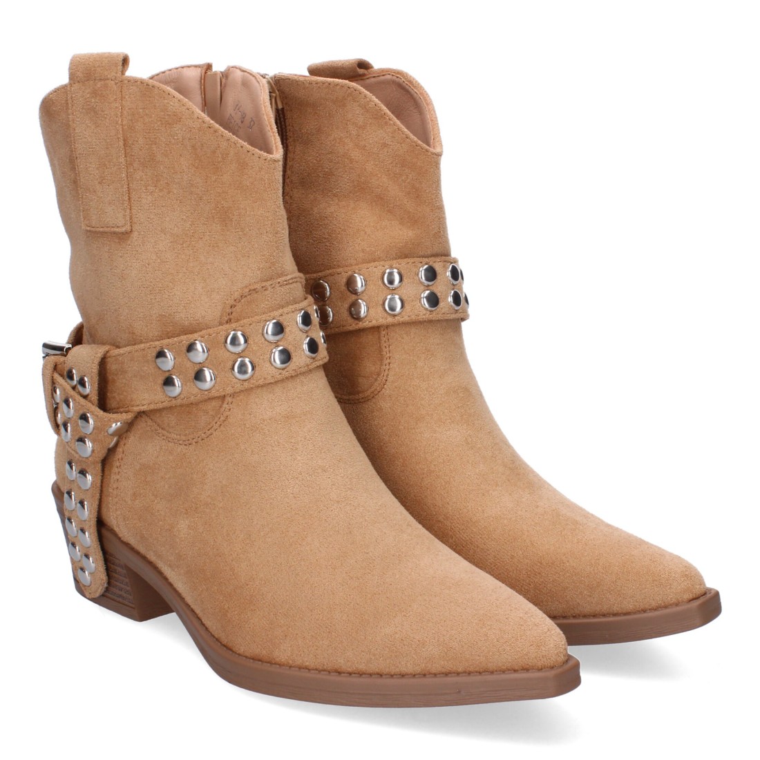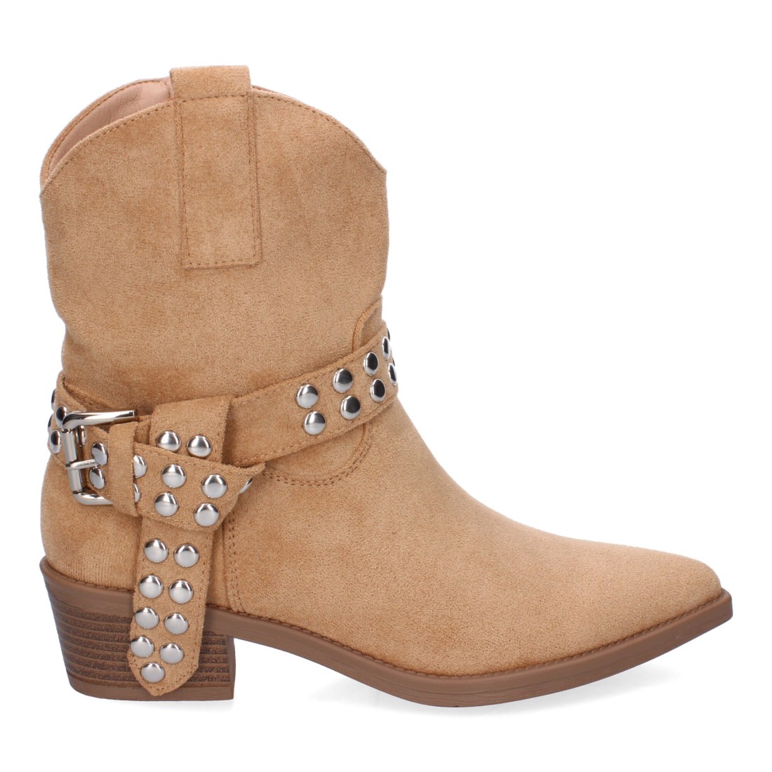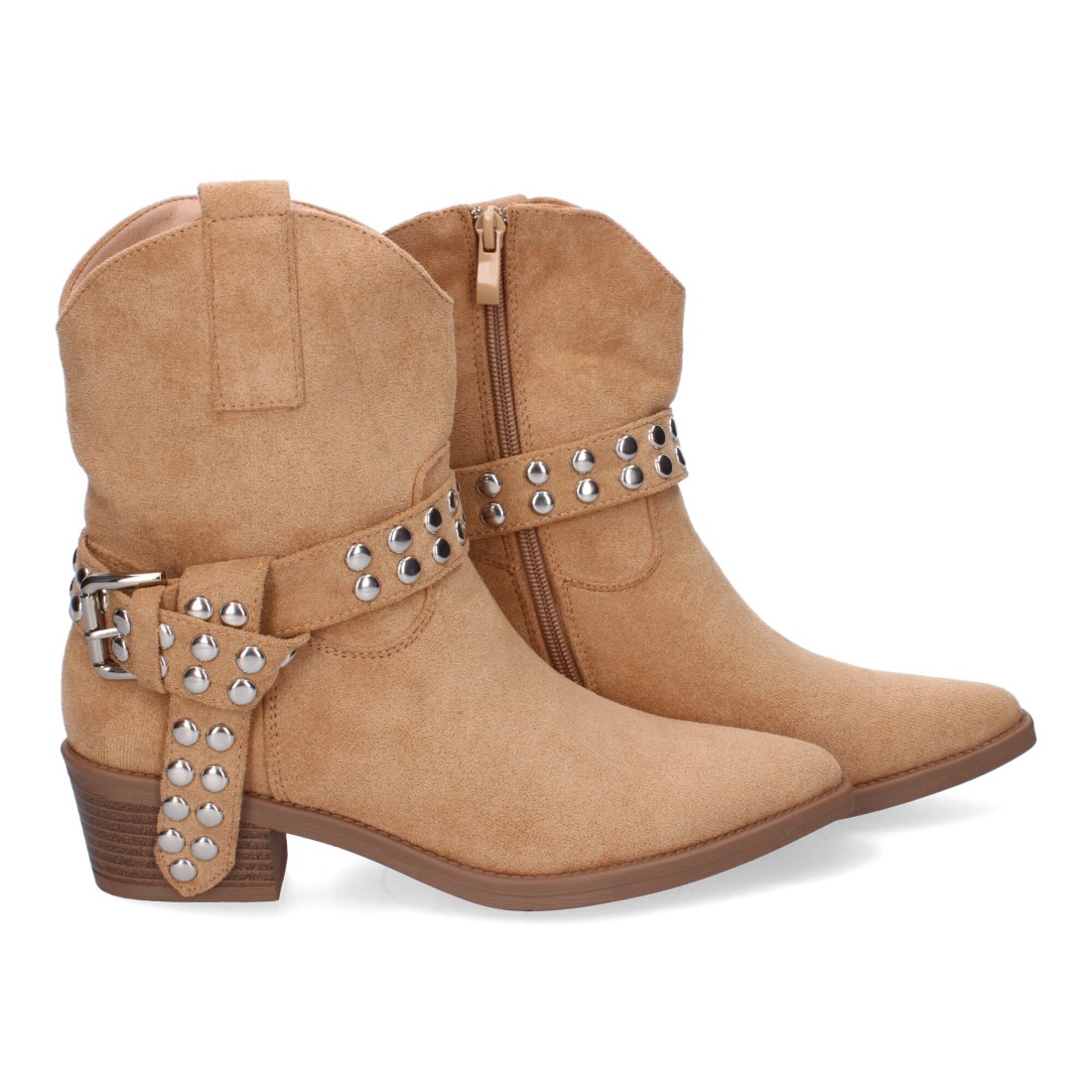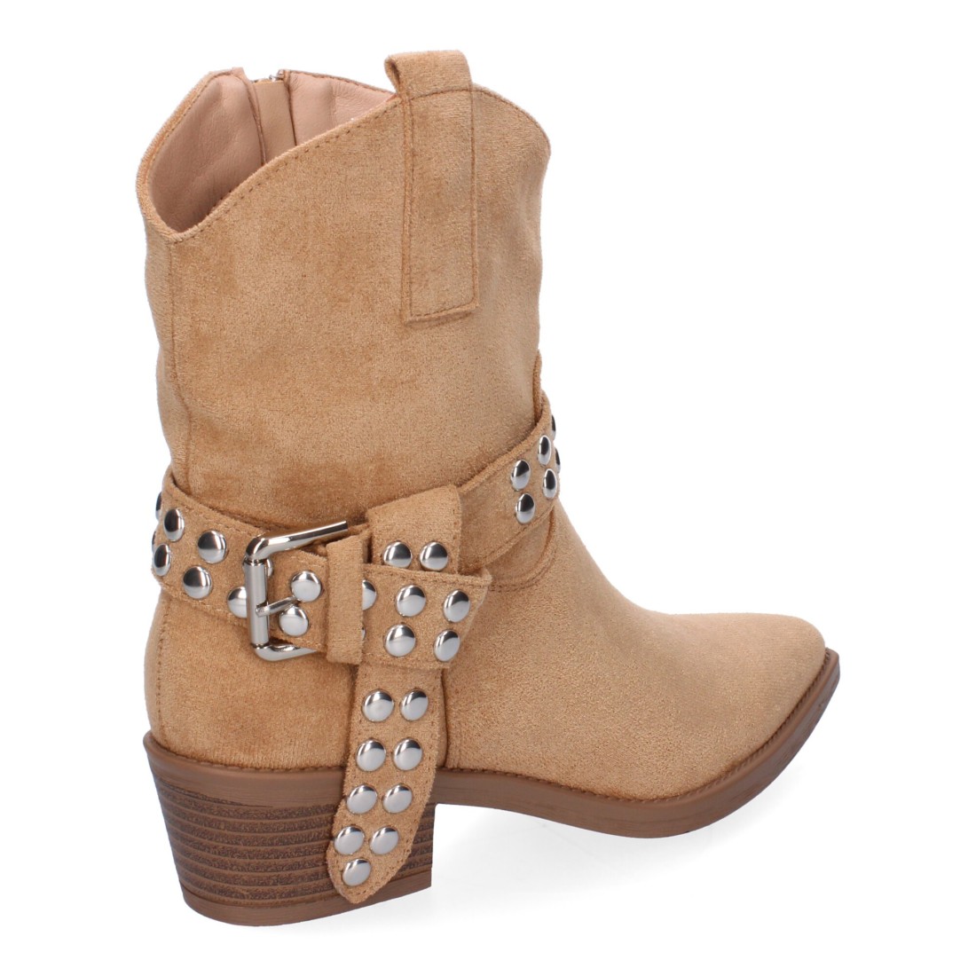 Botín de Tacón para Mujer Estilo Campero, Comodas y Elegantes con Hebilla Decorativa y Tachuelas, Diseño Moderno y Versátil.