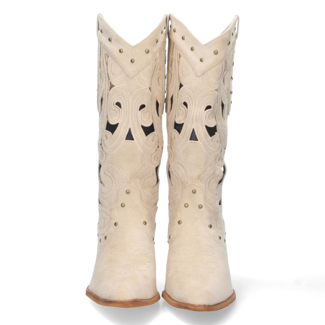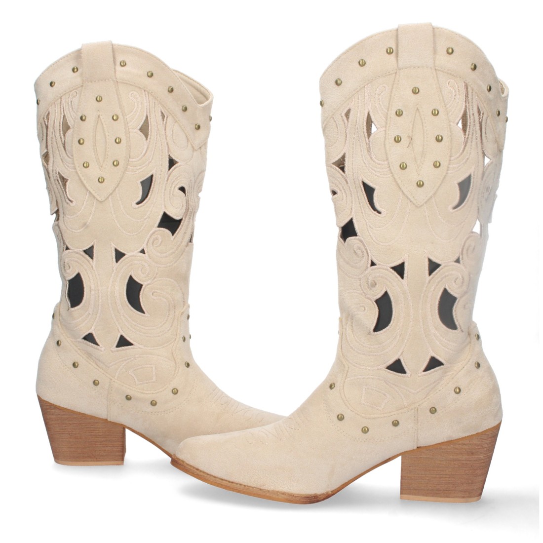 Bota de Tacón para Mujer, Comoda, con Calados y Tachuelas en la Caña, Cierre de Cremallera, Primavera Verano 2023