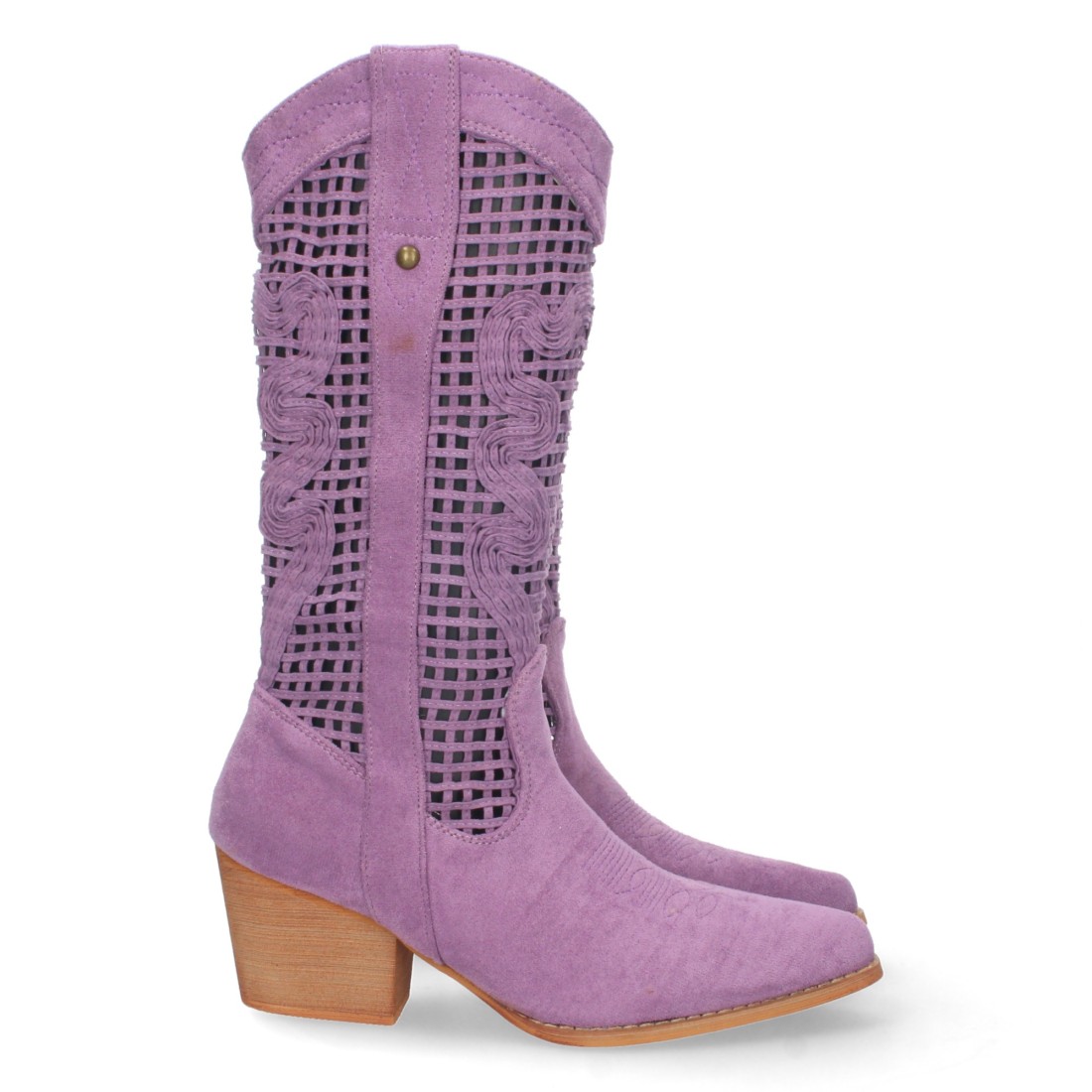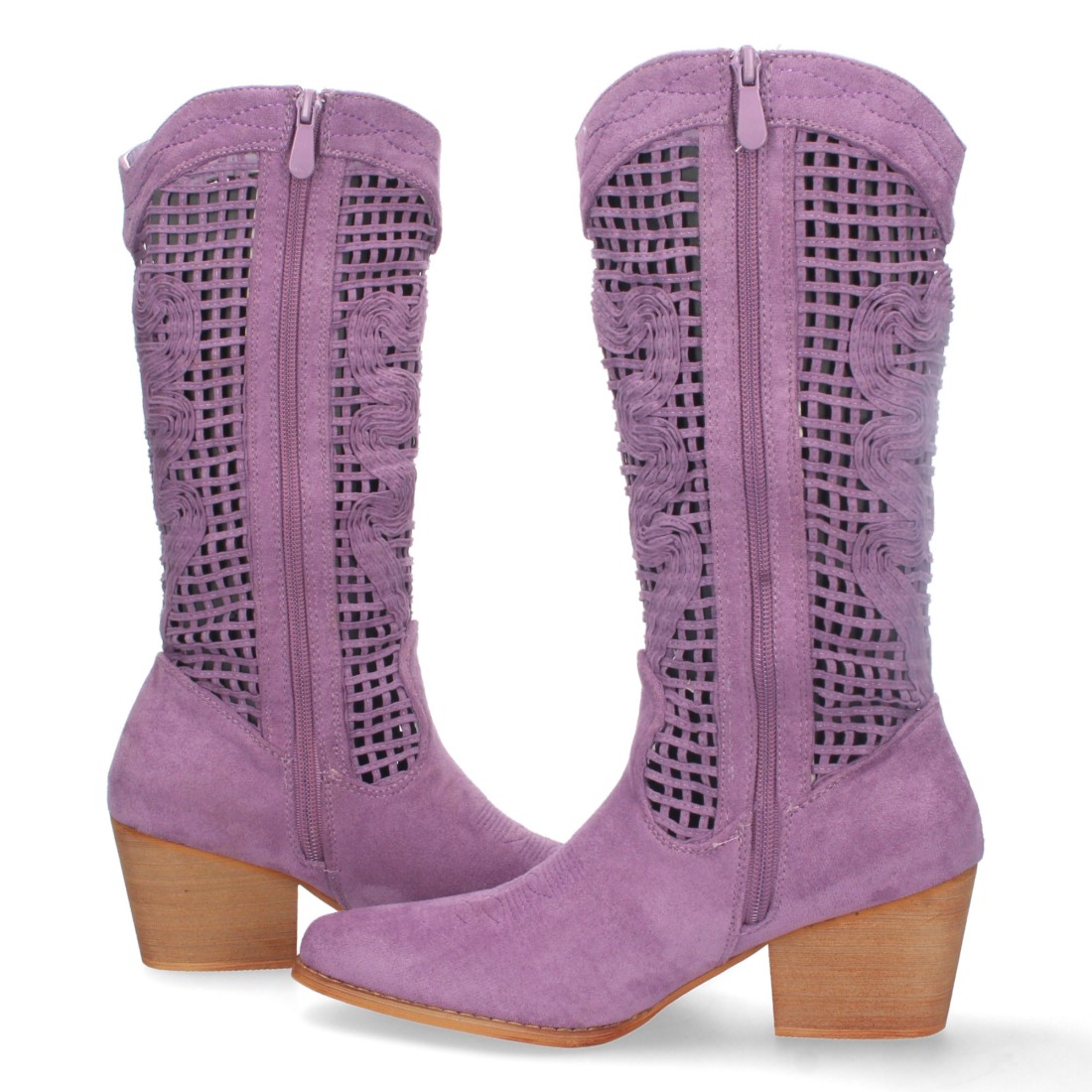 Bota de Tacon para Mujer, Comoda, con Calados en la Caña, y Cierre de Cremallera, Primavera Verano 2023
