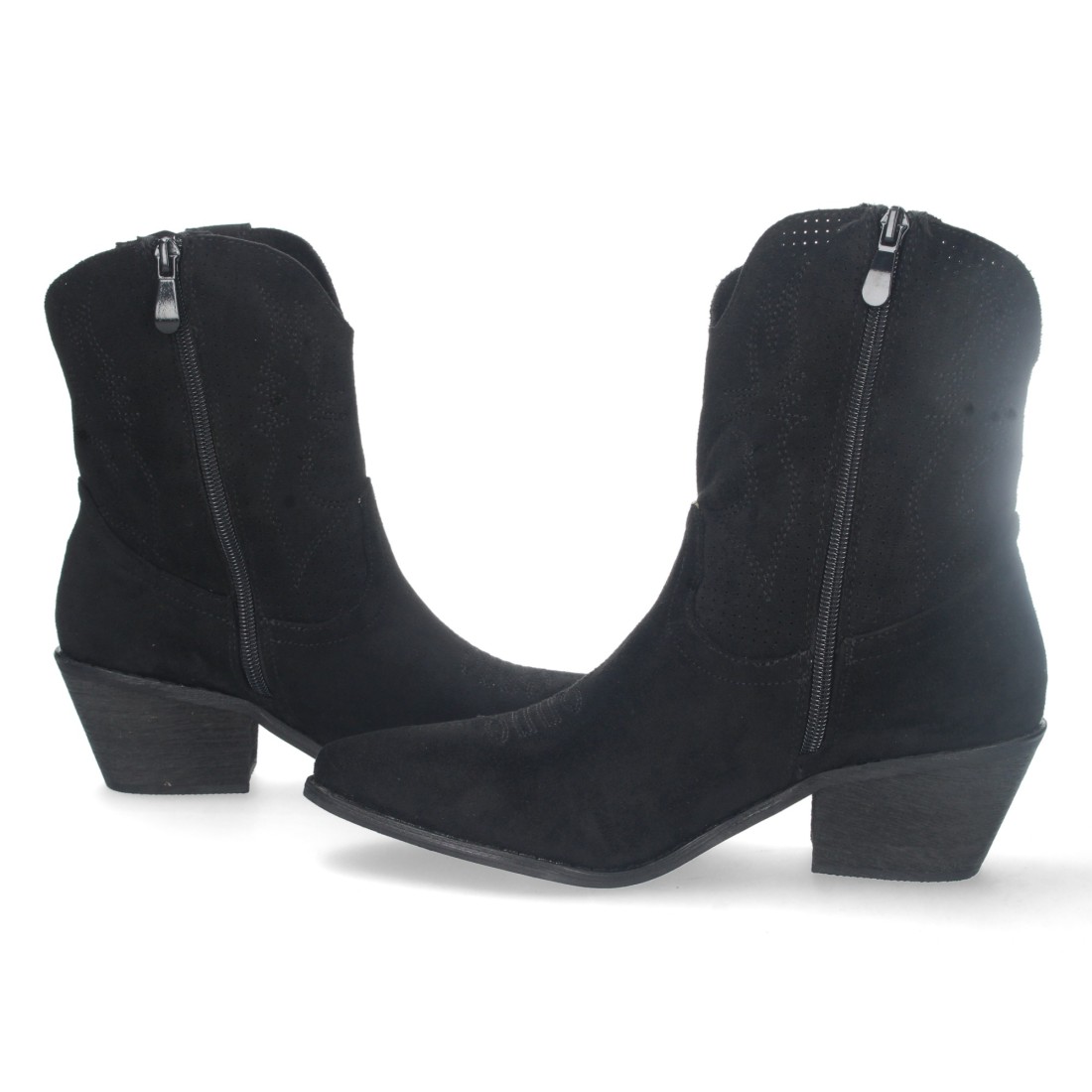Botin de Tacon Campero para Mujer, Comodo, con Perforado Mil Puntos en Caña, Bordado, y Cierre de Cremallera, Primavera Verano 2023