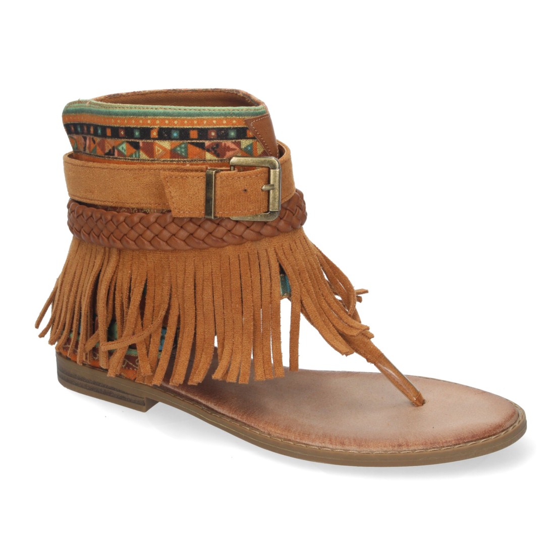 Sandalia Plana para Mujer, con Flecos, Detalles Bohemios