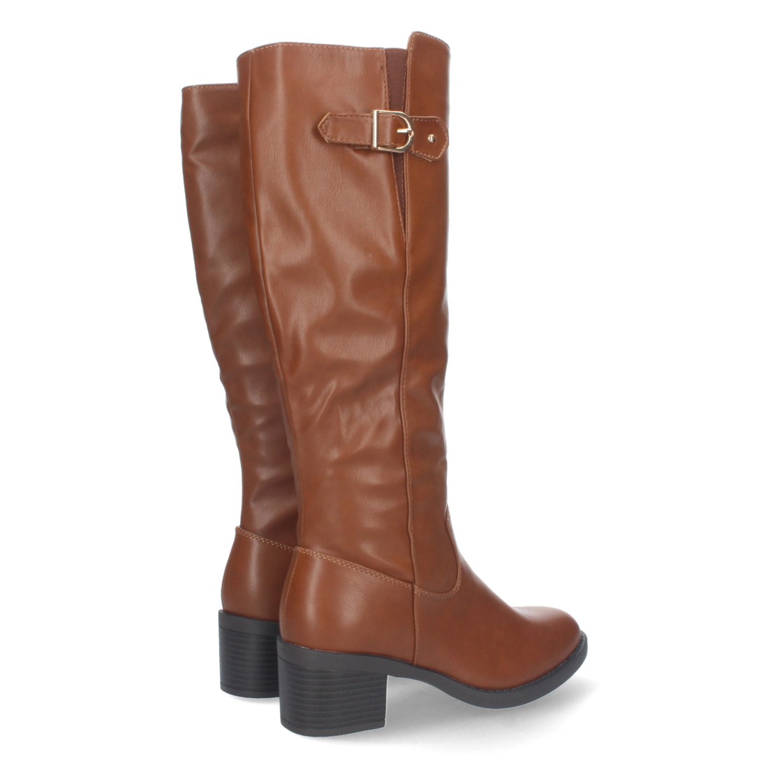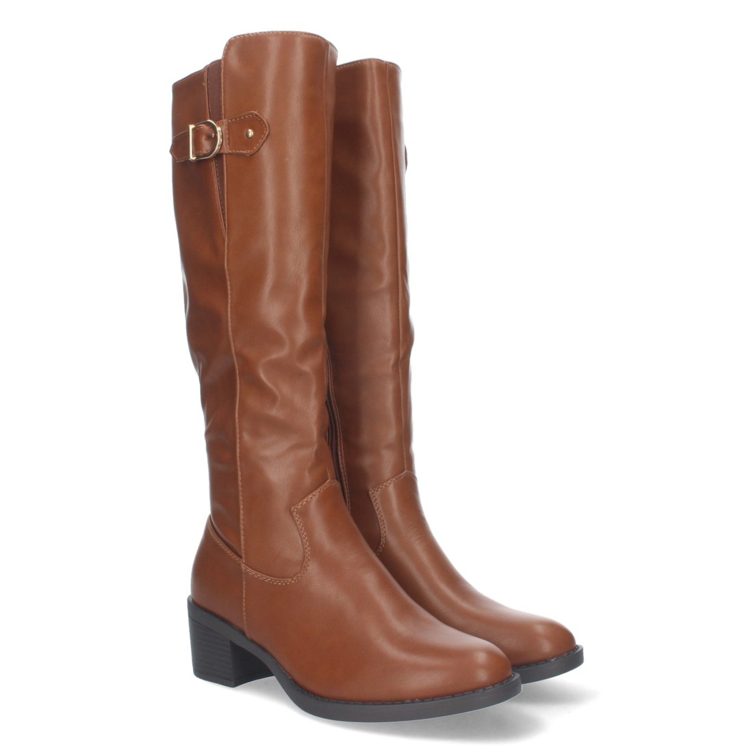 Bota Lisa de Tacón Bajo con Cierre de Cremallera y Adorno de Hebilla en la Parte Superior de la Caña (34’5cm), Cómodas e ideales para Otoño e Invierno