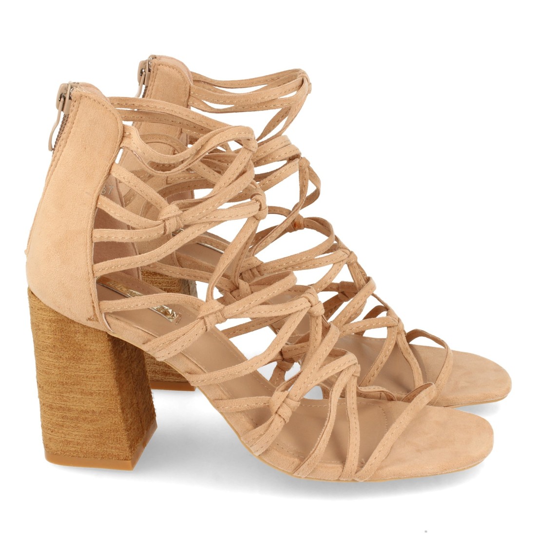 Sandalia de Tacón para Mujer, Comodas, con Tiras Cruzadas en el Empeine, y Cierre de Cremallera, Primavera Verano 2021