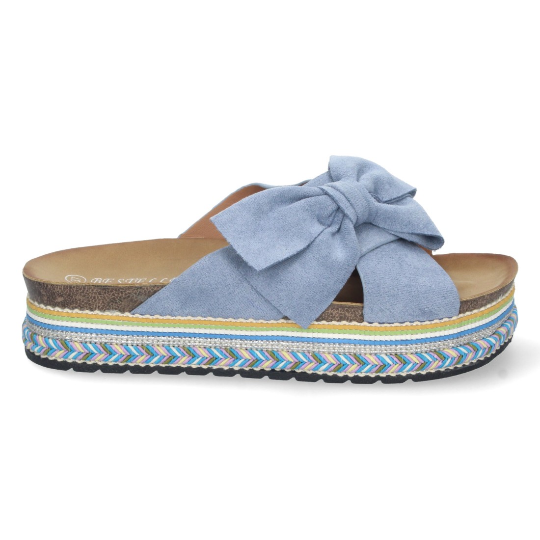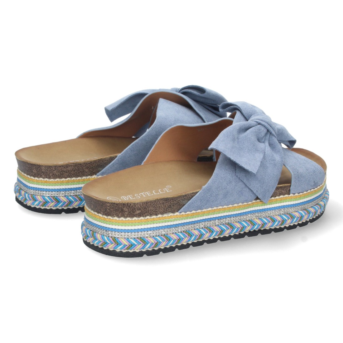 Sandalia de Plataforma para Mujer, Comoda, con Motivos Etnicos, Palas Cruzadas con Lazo, y Talon Abierto