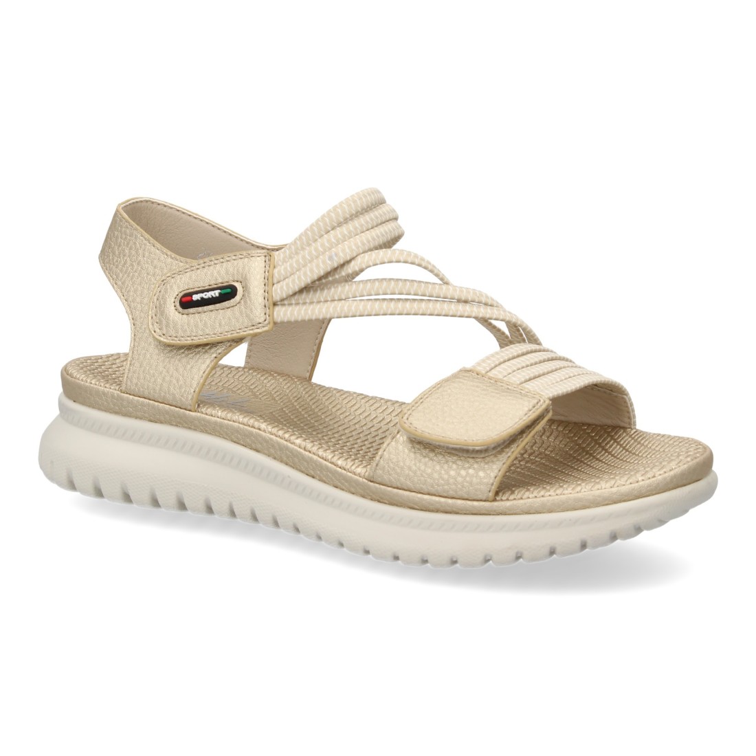 Sandalia plana de mujer diseño moderno y ligero con doble cierre de velcro y tiras elasticas para mayor comodidad., ideales para primavera verano.